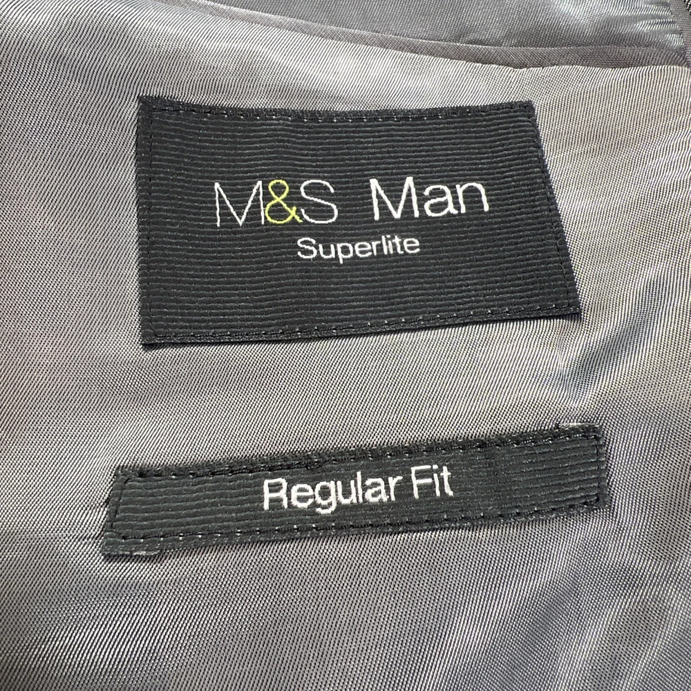 M&S MAN SUPERLITE Grey Wool Blend Regular Fit 2 Piece Suit Material 55% polyester 45% wool Jacket Features Chest: 42M" Inside pockets: 3 Front pockets: 2 Breast pocket: 1 Buttons to each cuff: 4 Buttons to front: 2 Back vents: 2 Shoulder to cuff: 25" Armpit to cuff: 17" Armpit to armpit when laid flat: 22" Shoulder to shoulder: 18" Collar to hem: 31" Trouser Features Waist: 38" Zip Front pockets Back pocket: 1 with button 0 button & 2 hook fastenings Inside leg: 31" (cannot drop) Width of hem at bottom of trousers: 8 3/4" AKD0015-558 Please note: Colours may slightly vary due to lighting conditions Each item undergoes meticulous hand-measured scrutiny; sizes may not align precisely with the label Review measurements and review the item description/photos before placing your bid Unfortunately, we cannot provide additional photos once items are listed The shirt and tie are not included unless explicitly stated in the listing Questions and concerns: Reach out to us through the ebay messaging system - we aim to respond within a maximum of 12 hours Ironing guidelines: Garments may arrive with minor creases Refer to the care label and use continuous steam when ironing We recommend dry cleaning for best results and peace of mind Your feedback matters: Please leave us a 5-star rating if satisfied For issues or concerns, please contact us before leaving feedback Returns: We offer a generous 30-day return period, via the eBay returns centre Please return items in their original packaging with all tags attached Buyers cover return shipping costs unless items are faulty or inaccurately listed