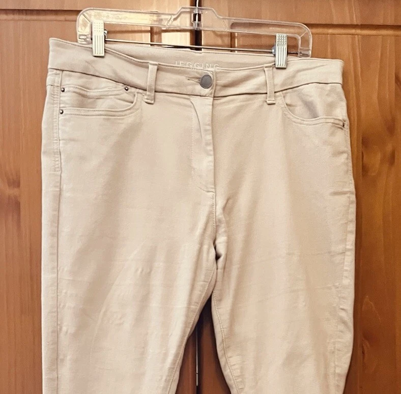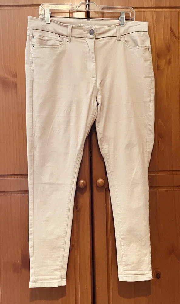 M&S Neutral Stretch Canvas High Waist Zip Up Jeggings UK16 Short L27"