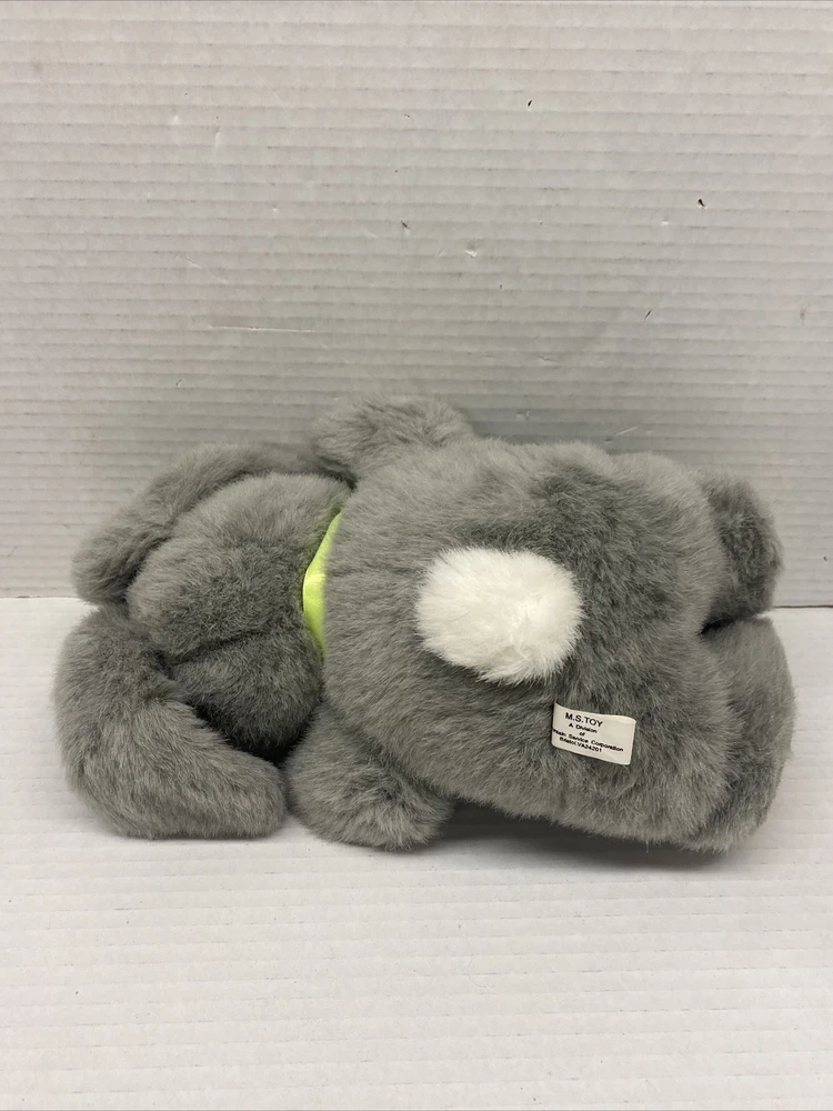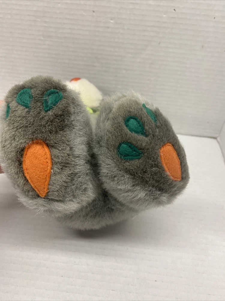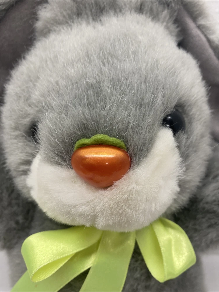 M.S. Toys Grey Plush Bunny Rabbit 10" with Carrot NOSE and Feet Green bow Easter See all photos for exact size and condition