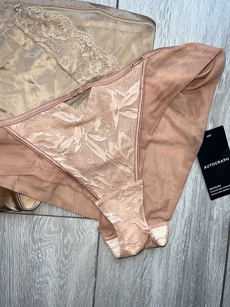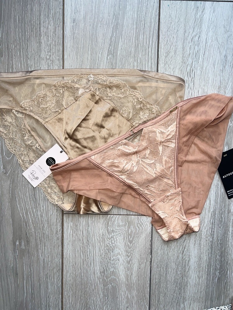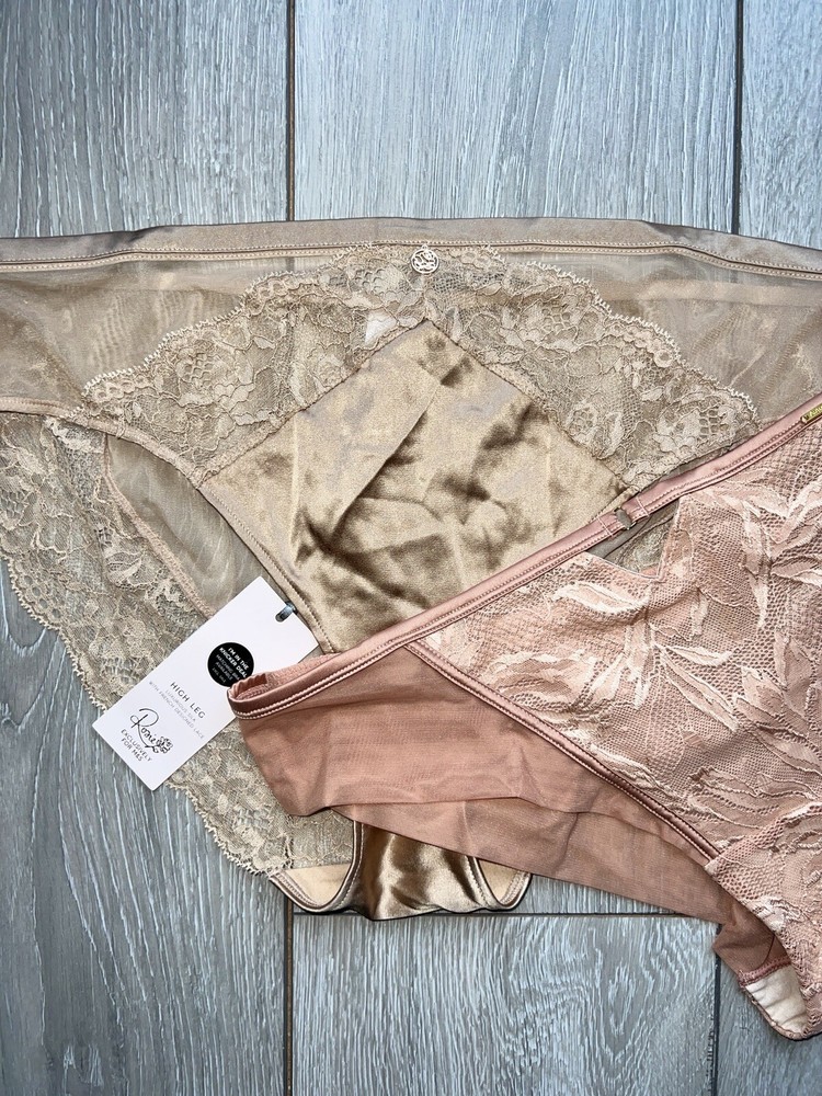 M&S x2 Lace High Leg Bikini Briefs Knickers Size 16 Pink Peach