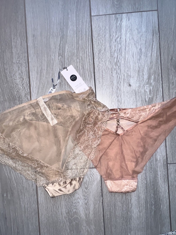 HomeM&S x2 Lace High Leg Bikini Briefs Knickers Size 16 Pink Peach