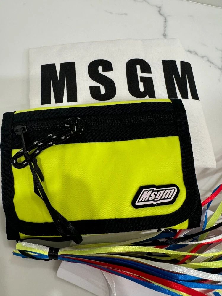 Fabric: Technical weave Neon color is brighter than it appears in still photos Branded patch at front Key ring at interior Velcro closure Zip exterior pocket, interior patch and pouch pockets Packable cord shoulder strap Lined Imported, China Height: 4in / 10cm Length: 5.5in / 14cm Strap drop: 19in / 48.5cm