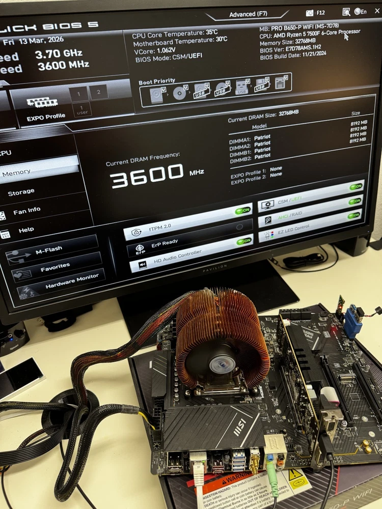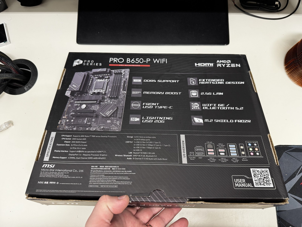 MSI PRO B650-P WIFI (AM5 ATX Motherboard) Fully tested — BIOS updated to the latest version for full AMD Ryzen 7000/8000/9000 compatibility. Item Description Professionally removed from a working system during an upgrade. The motherboard is in excellent condition , fully tested and ready to install. The MSI PRO B650-P WIFI is known for its reliability, stability, and strong value in the AM5 platform lineup. MSI’s PRO series focuses on clean design, solid power delivery, and dependable performance — making it a great choice for gaming systems, workstations, and everyday high-performance PCs. This board offers a robust VRM design, fast DDR5 support, built-in Wi-Fi, and excellent connectivity while maintaining MSI’s reputation for stable BIOS and long-term reliability. Supports AMD Ryzen AM5 processors (7000 / 8000 / 9000 series) Latest BIOS installed — ready for all currently supported CPUs DDR5 memory support Built-in Wi-Fi 6 + 2.5Gb LAN Multiple M.2 NVMe storage slots Reliable MSI PRO power delivery design Standard ATX layout with excellent expansion options You can find the full technical specifications on the manufacturer's website: MSI Official Product Page – PRO B650-P WIFI Please note: The rear I/O shield and M.2 SSD heatsink are not included. This has already been reflected in the price . What you see in the photos is exactly what you will receive. Terms of Sale 30-day warranty against DOA only . Buyer must install using proper ESD protection . No returns for user damage, bent pins, or compatibility issues. All serial numbers are recorded for fraud prevention. Shipping Information Ships within 1 business day . USPS Ground Advantage with tracking & insurance . Secure packaging: anti-static bag + foam padding + sturdy box . Local pickup available (Washington state). Additional Information Each motherboard is individually inspected and tested: BIOS boot and POST verified ( latest BIOS installed ) CPU socket checked — no bent pins RAM slots, PCIe, M.2, SATA, USB, LAN, and Wi-Fi tested Visual inspection under magnification Buy with Confidence Professional hardware seller — fast communication, careful handling, and full transparency. Check feedback and buy with confidence! Note: Accessories and packaging may vary between units. Please review photos for the exact contents included with your purchase.