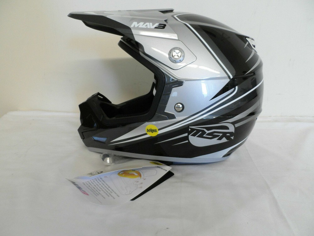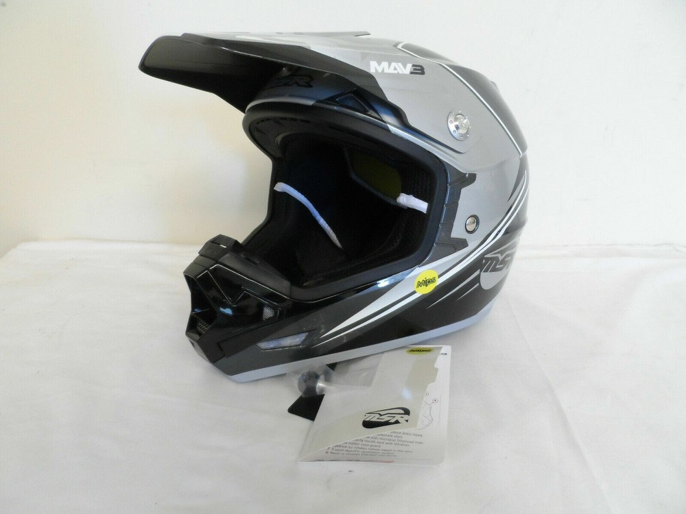 Thanks for checking out our Store! Up for sale is a Brand New customer return MSR MAV 3 Block Helmet. See condition report below. Shell made of injection molded polycarbonate. MIPS liner between the comfort foam and the dual density EPS liner. SilverCool moisture wicking liner is odor free and removable for washing. SilverCool padding also reduces odor and is antimicrobial. Nine intake and exhaust vents to help keep you cool. Four eyebrow vents help evaporate sweat before it drips into your eyes and goggles. Wire mesh chinbar vent has foam filter. Flexible rubber nose/cheek piece top help deflect roost. Safety is key! ECE and DOT compliant. Color: Silver / Black Size: X-Large Manufacturer Part # 359807 Condition: Brand New..never used. Returned because the helmet and visor have a few light scratches on them. Can be viewed in photos. There is also a paint nick by the rear right hand vent. See photos. Thanks for Looking and Good Luck! Don't forget to check out our Other Auctions along with our Ebay Store for More Great Deals! BL-359807 Flat rate shipping applies to the lower 48 states only.