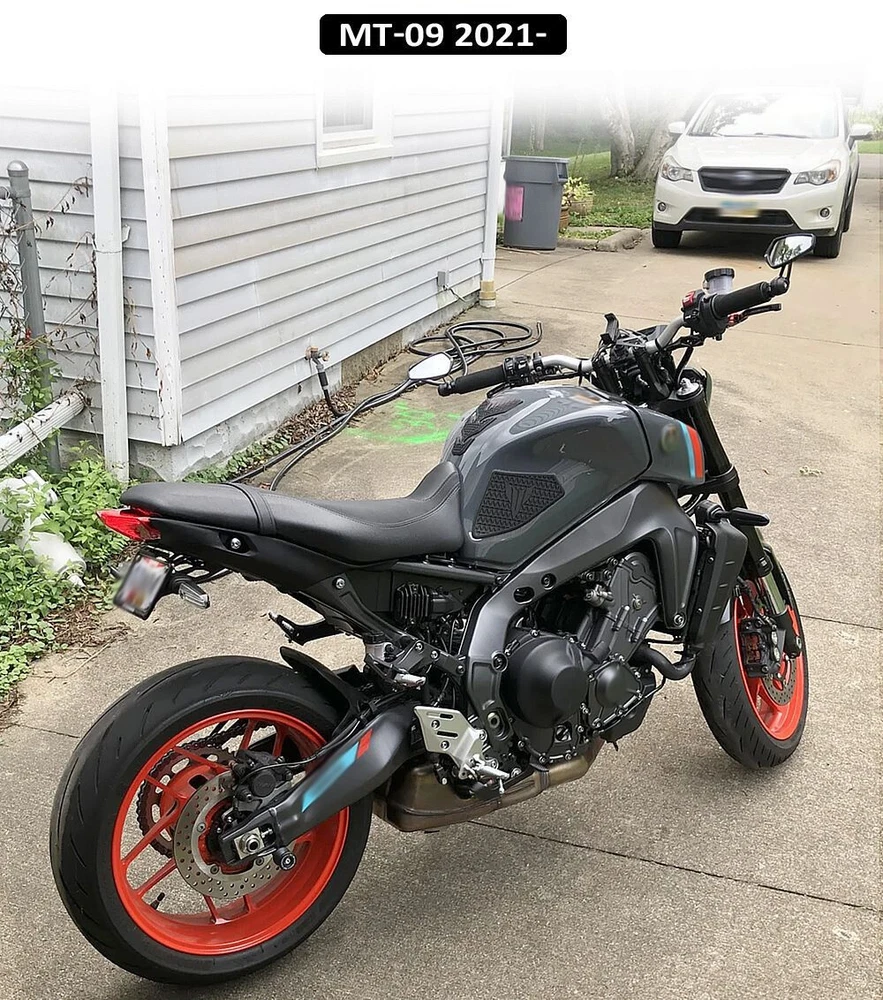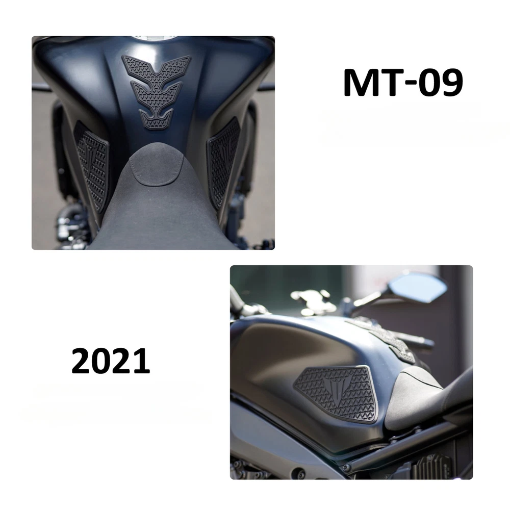 Applicable models: - Yamaha MT-09 2021- Three-piece set: Upper water tank pad plus side grip pads on the left and right sides The fuel tank seal is glued to the fuel tank Installation precautions: The adhesive on the side tank pads must cure 24 hours before the first ride Robust rubber material provides maximum grip and control Features: High-density rubber increases strength - Strong and excellent adhesive quality Fuel tank pads can prevent scratches on the fuel tank (e.g., from the zipper of a motorcycle jacket). Side tank pads offer the best protection against scratches or scuffs on the knees of the tank Raised and improved bike grip Sporty appearance, improved riding experience, and scratch protection Product weight: 0.2 kg