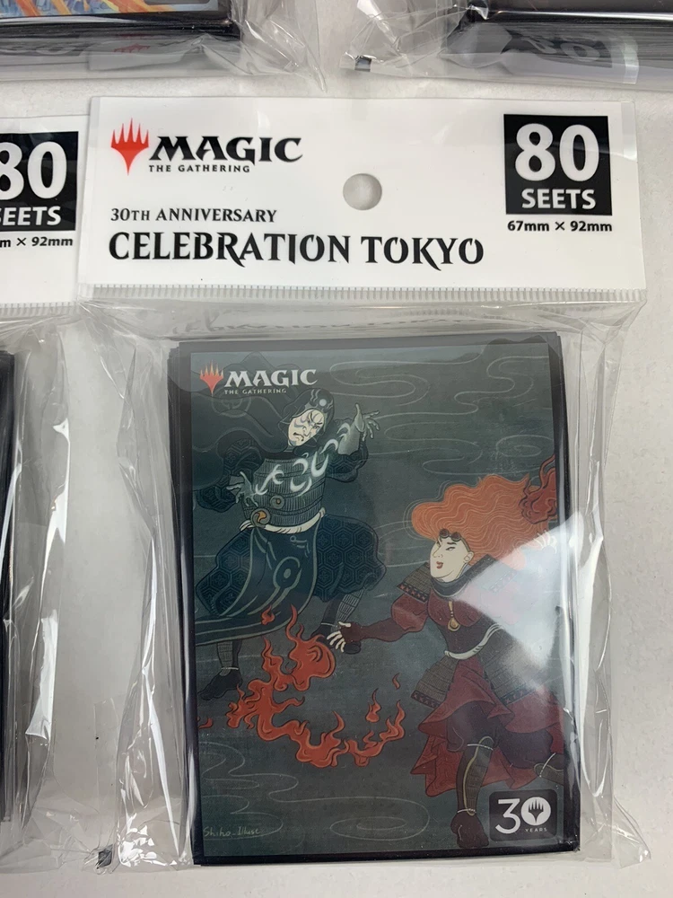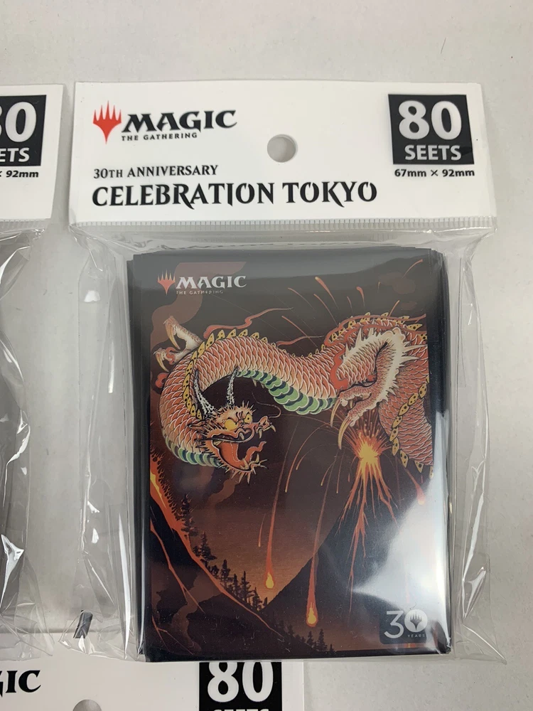 Celebrate 30 years of Magic: The Gathering with this limited edition set of 5 CCG card sleeve packs, exclusively released at Celebration Tokyo. Each sleeve features a unique design showcasing various characters from the Magic: The Gathering franchise. These sleeves are brand new and rare, perfect for any collector or Magic: The Gathering player looking to add a special touch to their deck. Made in Japan, and released exclusively for the Celebration Tokyo event, these high-quality card sleeves are beautiful accessories for protecting and showcasing your Magic: The Gathering cards. Don't miss out on the opportunity to own a piece of Magic: The Gathering history with this 30th Anniversary Limited Edition Sleeves Set. Sets include ‘Ice Out’, ‘Pyroblast’, ‘Jace vs Chandra’, ‘Magic Shivan Dragon’ and ‘Crush Evil Naoki Saito’. Beautiful for display or play. Please look at the photos closely. They are photos of the exact item you will receive and form part of the description. Free tracked postage within Australia. Thanks for looking.