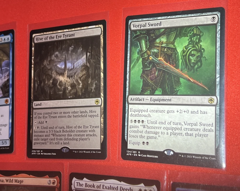 Finish:RegularCharacter:N/AManufacturer:Wizards of the CoastCard Type:Legendary ArtifactNumber of Cards:7Attribute/MTG:Color:Multi-ColorFeatures:MythicGame:Magic: The GatheringUPC:Does not applyCard Size:StandardSet:Adventures in the Forgotten RealmsLanguage:Englishgtin13:Does not apply