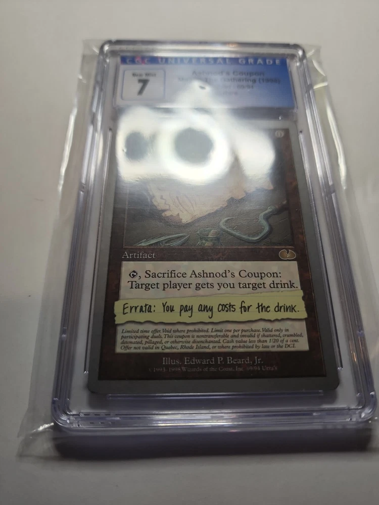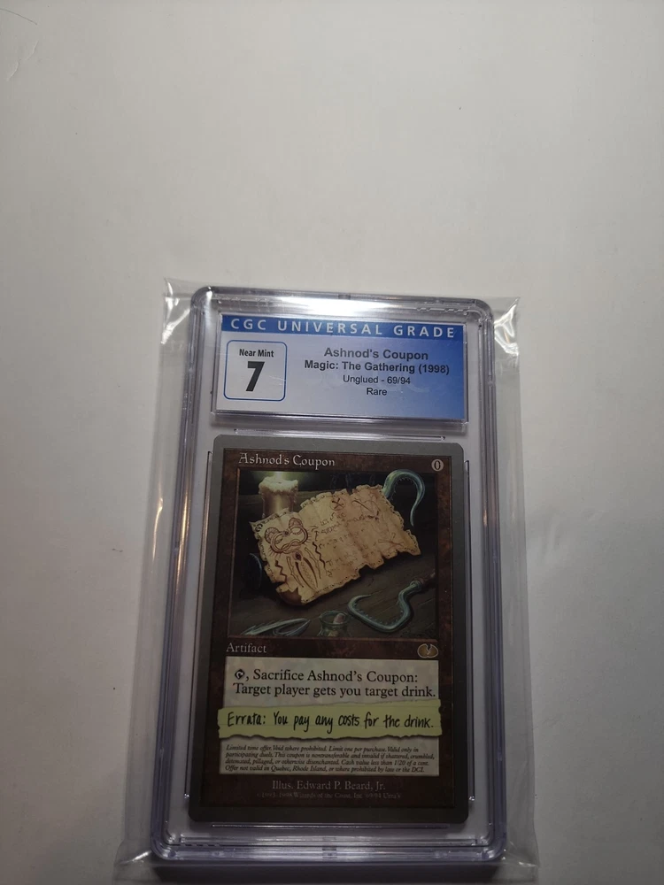 MTG Ashnod's Coupon -- Unglued -- Regular Rare -- NM cgc 7. What is pictured is what is being sold, cards are graded with cgc grading and are on the pop report! Message with any questions or offers! Thanks for looking