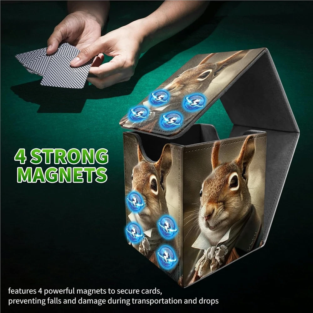 ❥ Deck box tcg made from water resistant, sturdy, durable PU leather material on the outside and high protection soft microfiber lining inside. Keep your valuable cards safe and secure. ❥ The commander deck box size - 3.54 * 3.1 * 4.1 inches, holds up to 100 standard-sized cards. Perfect for organizing and protecting your favorite TCGs, CCGs, LCGs, and collectible cards. ❥ MTG card storage powerful magnets keep the card holder secure during transportation. no more worrying about your cards falling out or getting damaged. ❥ U-shaped thumbholes provide easy access to your cards. The stylish and eye-catching design makes it a must-have accessory for any card game enthusiast. ❥ MTG box Suitable for a variety of popular trading card games including Magic The Gathering, Dragon Shield, Star Wars X-Wing, Game of Thrones, WoW, Force of Will, Legend of the Five Rings, Cardfight! Vanguard, Duel Masters, Panini football, and Baseball Cards. RWUTYTIUL MTG Commander Deck Box - the ultimate storage solution for your beloved trading card game (TCG) and collectible card game (CCG) decks. Why did you choose us? 💖Made from water-resistant, sturdy, and durable PU leather material on the outside, this deck box ensures that your cards are protected from moisture and other external elements. 💖The high-protection soft microfiber lining inside provides an added layer of security, keeping your cards in pristine condition. 💖Measuring at 3.54 * 3.1 * 4.1 inches, this deck box can hold up to 100 standard-sized cards. 💖It is specifically designed to fit single-sleeved cards, making it the perfect choice for Magic Commander, TCG, and CCG players. 💖The powerful magnets integrated into the box keep your cards securely in place during transportation, preventing any accidental spills or damage. 💖Not just limited to Magic The Gathering, this deck box is suitable for a variety of TCGs, CCGs, LCGs, and other collectible card games. Whether you play Dragon Shield, Star Wars X-Wing, Game of Thrones, WoW, Force of Will, Legend of the Five Rings, Cardfight!! 💖Vanguard, Duel Masters, Panini football, or Baseball Cards, this deck box is designed to accommodate your favorite cards. 💖The deck box features U-shaped thumbholes, allowing for easy access to your cards. No more struggling to retrieve or store your cards - simply slide them in and out effortlessly. 💖The sleek and stylish design of this deck box is also eye-catching, making it a standout accessory for any gaming session or tournament. Note: It is better to wipe off the gray layer of the wall before use, will be more easy use in smooth surfaces.