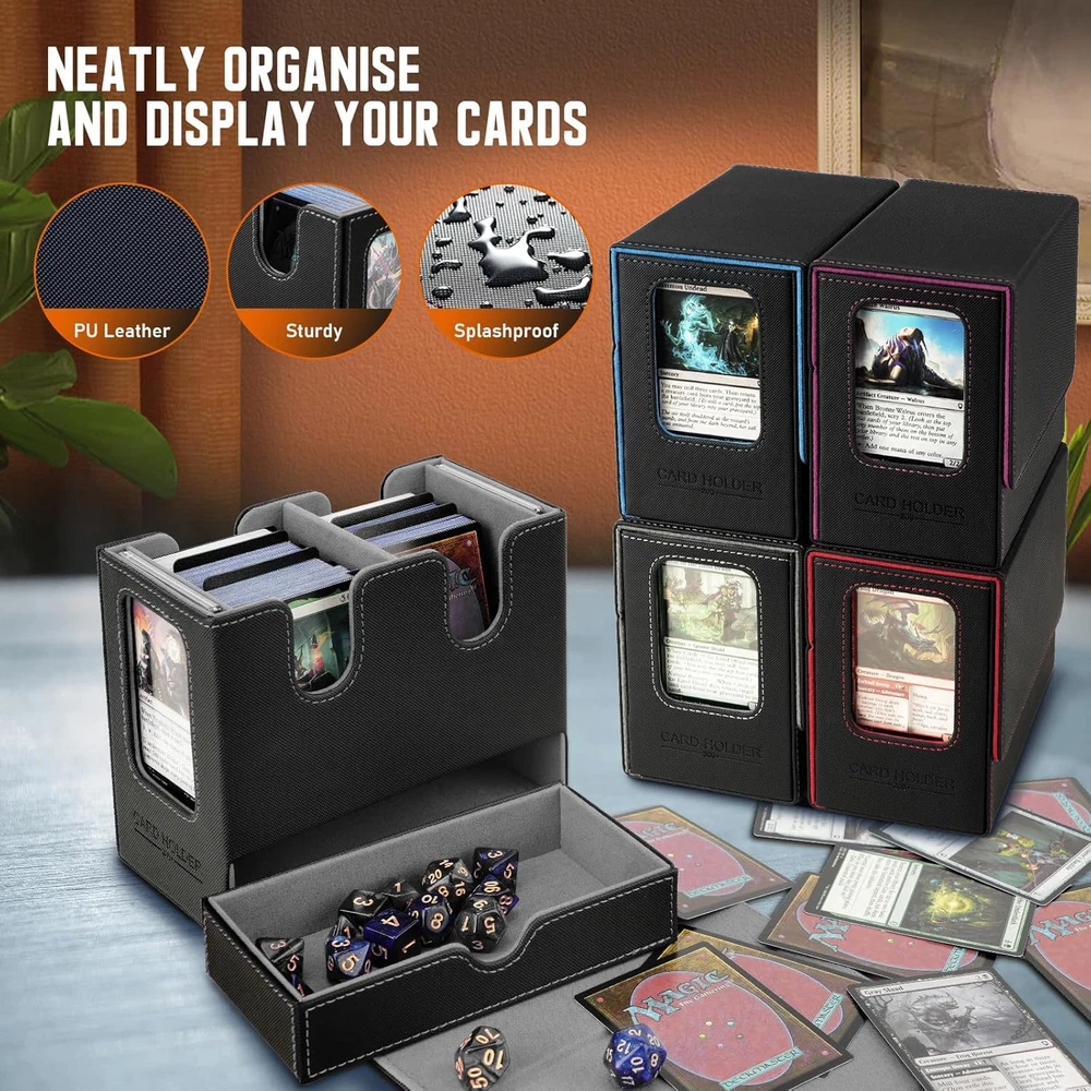 This MTG Deck Box is a game-changer! It holds tons of cards, whether sleeved or unsleeved, and the U-shaped opening makes accessing them mid-game a breeze. Love the hidden dice drawer—keeps everything secure but easy to grab. The commander display window adds a stylish touch, and the whole case feels durable and well-designed. Perfect for keeping your collection organized while looking awesome on the table!