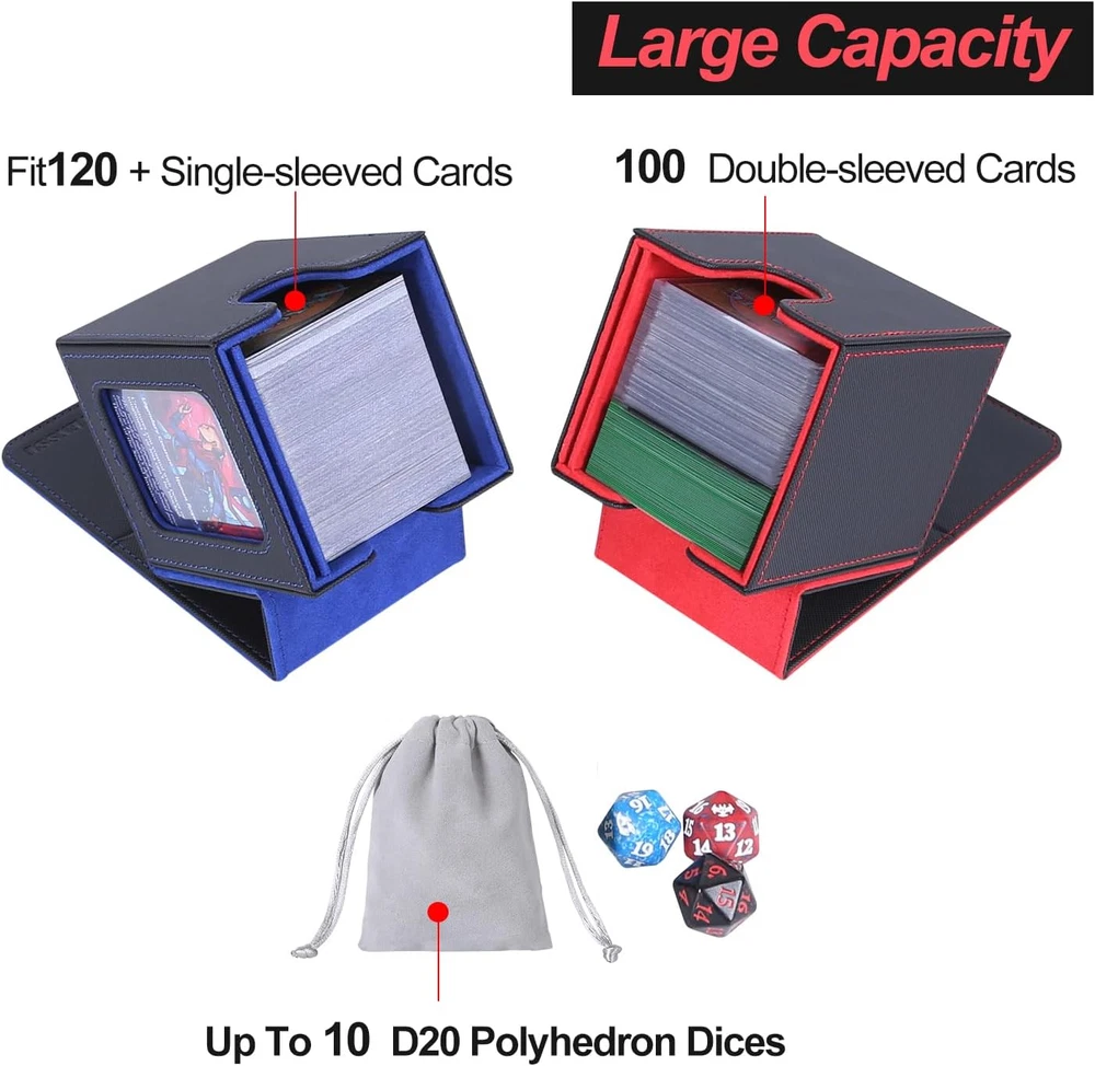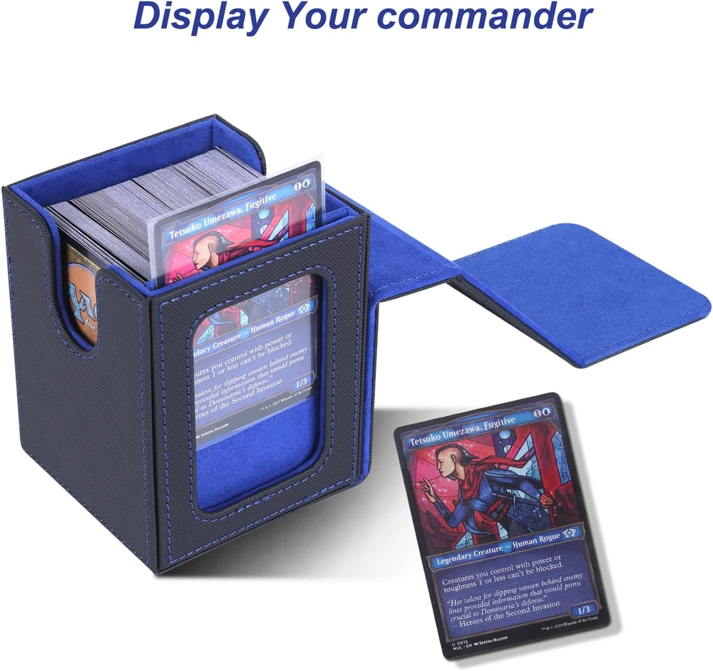 【Tailored for Commander Enthusiasts】Specifically designed for Commander EDH players our innovative design is custom-fitted for your Commander deck. Elevate your EDH and Sorcery decks with our unique deck boxes featuring a side window for your commander or Avatar. 【Ample Storage】Our deck box, measuring 4x3x3 inches inside, easily holds 100 double-sleeved cards and a dozen tokens. The accompanying drawstring bag neatly stores up to 10 D20 polyhedral dice for quick and easy access. Compact, convenient, and designed for effortless one-handed use. 【Powerful protection】Unleash powerful protection with our compact deck box. The durable PU leather shell delivers shockproof resistance, and the soft microfiber interior provides a safe haven, guarding cards from scratches. Multiple magnets ensure a secure closure, guaranteeing safe transport. The added drawstring pocket introduces an extra layer of defense, shielding your dice and cards from potential scratches. 【Effortless Organization】The Commander card slot allows you to effortlessly check the box's contents without opening each one individually. Whether you're into MTG, PTCG, or any other TCG, keeping your collection well-organized has never been easier. 【Bonus Inclusions】Every trading card box includes 2 card dividers, 1 drawstring bag, and 1 top loader ,Weighing just 0.38 LB, it's compact, lightweight, and easily portable – a top-notch choice for card enthusiasts! Product Description Innovative window design The Ultimate Commander Solution Specifically designed for Commander EDH players our innovative design is custom-fitted for your Commander deck. Securely store your Commander card in the included top loader,Showcase your Commander proudly in the dedicated slot. Easy to determine what box has what. The Commander card slot simplifies organization. Check your box's contents without opening each one individually. Whether you're into MTG, PTCG, or any TCG, our design ensures your collection stays well-organized with minimal effort. Ample Storage Storage with Convenience Measuring at 4x3x3 inches,It can comfortably hold up to 100 double-sleeve cards or an impressive 120+ single-sleeve cards. . Powerful Protection: Your cards deserve the best protection. Our deck boxes feature a durable PU leather shell for shockproof resistance, a soft microfiber interior to prevent scratches, and multiple magnets for a secure closure. An additional drawstring pocket adds an extra layer of defense, shielding your dice and cards. Play on the go The dic bag, holds up to 10 D20 polyhedral dice. Convenience is key, with a design that's compact, lightweight, and easily handled with one hand. Desing for Play Welcome to AFIING, where every card finds its perfect sanctuary. Join us in redefining gaming experiences for Commander players who demand excellence. Calling all Commander EDH players! Your quest for the ultimate card box ends here. Introducing our innovative design, tailor-made for enthusiasts like you. Say goodbye to accidental shuffles with our dedicated Commander slot and built-in card holder. But wait, there's more! This versatile deck box doubles as a secure deck holder, ensuring your cards stay intact during gameplay. Tested with various sleeves, it comfortably stores up to 100 double-sleeve cards or over 120 single-sleeve cards. Complete with a convenient dice bag and strong magnets for secure closure, your cards will stay safe on the go. Plus, with UV-protective features, your Commander card will remain pristine. Bid farewell to chaos – our Commander card slot ensures effortless organization, whether you're into MTG, PTCG, or any other TCG. Elevate your Commander experience today with the AFIING Commander Card Deck Box – the ultimate choice for serious players. Order now and keep your cards safe, organized, and battle-ready!