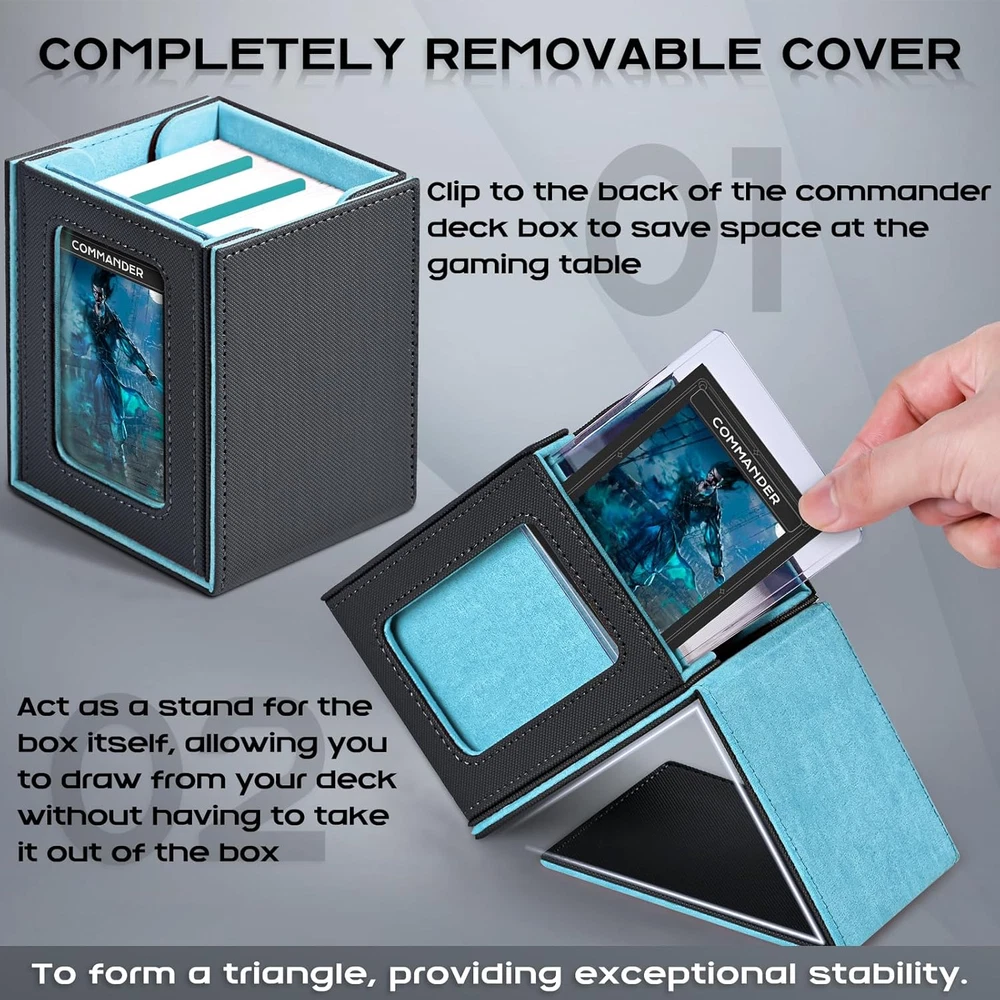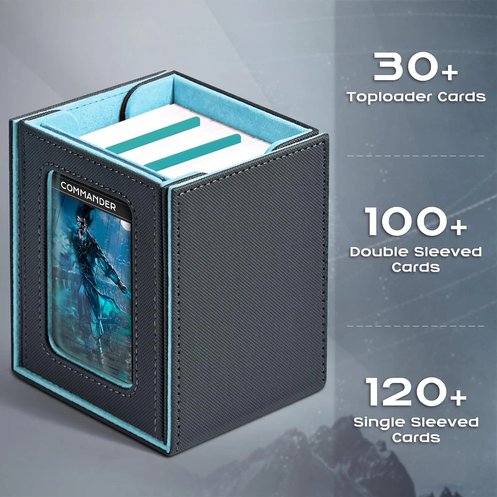 Patented Design: The display window on the lid adds a stylish touch to the deck box while allowing you to showcase your favorite card or artwork; This feature is especially appealing for collectors who want to display their prized cards (You can easily view the contents of the box without having to open) Durable Construction: Constructed from premium PU leather materials, ZLCA MTG Deck Box offers durability and protection for your cards; The robust design ensures that your cards remain safe during transport and storage, minimizing the risk of damage or wear Ample Storage: With a capacity to hold up to 230+ unsleeved cards, 120+ single-sleeved cards, or 100+ double-sleeved cards; The compact size and lightweight construction make it convenient to carry around, whether you're heading to a tournament or gaming night with friends Bonues Items Included: To better protect your commander character card, we provide you with a 35PT top loaders for cards, and two additional dividers are included to help you classify your cards more effectively Keep your cards neatly organized Compatibility with Various Games: While designed with TCG Commander decks in mind, this deck box proves to be versatile enough to accommodate cards for Shadowverse Evolve/PTCG/CCG/EDH/Sports cards Product Description ππΏπΆπ΄ πΆπ΄π π· π·πΈπΆπΎ π΅ππ Add to Cart Add to Cart Add to Cart Add to Cart Customer Reviews 4.9 out of 5 stars 241 4.7 out of 5 stars 287 4.7 out of 5 stars 455 4.7 out of 5 stars 455 4.7 out of 5 stars 669 β 4.7 out of 5 stars 11 Price $13.49 $ 13 . 49 $24.99 $ 24 . 99 $11.04 $ 11 . 04 $19.99 $ 19 . 99 $9.99 $ 9 . 99 β $99.99 $ 99 . 99 π΄ππππ π πππππ Divider * 2/ toploader * 1 35pt Magnetic Card Holder *1 Divider * 10/ toploader * 1 Divider * 10 Divider * 2 Divider * 2 Playmate * 1 πππ§π 3.9*3.2*4.3 inch 8.8*3.9*4.8 inch 11.3*3.7*4.3 inch 11.3*9.4*4.1 inch 4.1*3.5*3.1 inch 3.2*3.1*4.1 inch 16.2*7.6*3.6 inch πππππ£ππ πΆππππ 120+ 300+ 600+ 1800+ 120+ 100+ 1200+ πΉππ‘ πππ sleeved cards/ toploader sleeved cards/card holders sleeved cards/ toploader sleeved cards only sleeved cards only sleeved cards only sleeved cards/ small deck box π·πππ ππππ¦ β β β β β β β