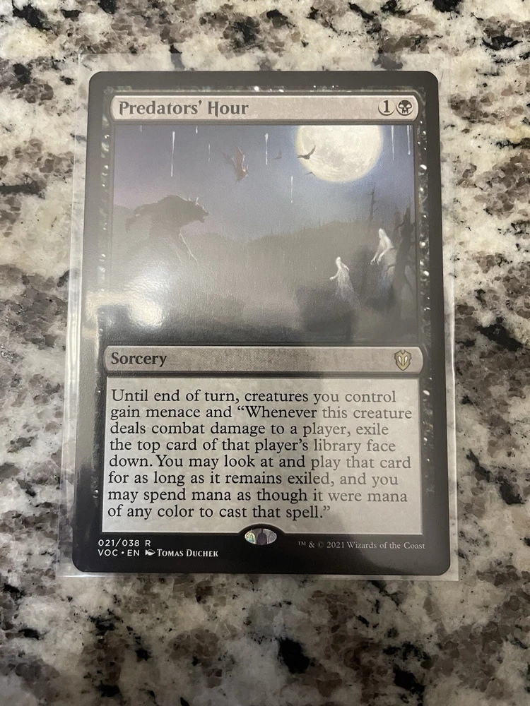 This Commander Innistrad Crimson Vow Predator's Hour, is perfect for any commander deck, condition as shown in pictures. Will be shipped via Ebay's standard envelope for items up to 20$.