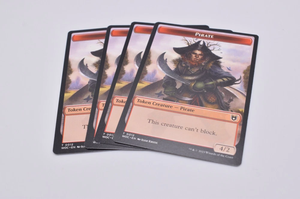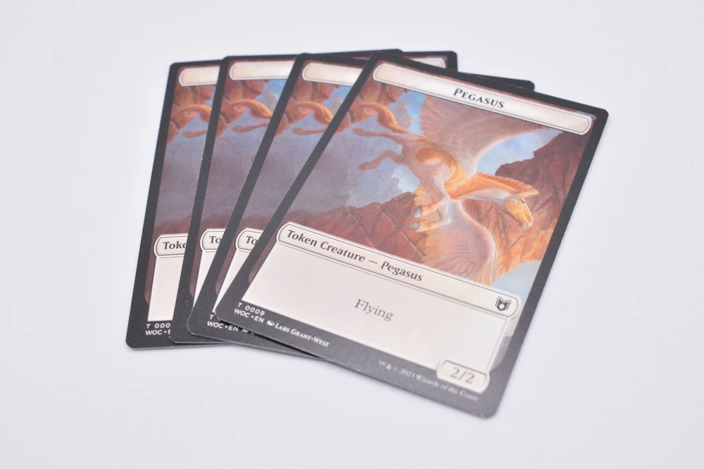 Game: Magic: The Gathering Card Type: Token Creature Card Number: 12/9 Manufacturer: Wizards of the Coast Finish: Regular Card Name: Pirate Pegasus Double-Sided Token Set: Commander: Wilds of Eldraine Vintage: No Language: English Autographed: No Rarity: Token Material: Card Stock Age Level: 13+ Card Size: Standard