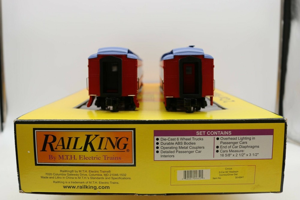 MTH 30-6941 RailKing O/O-27 Circus Madison Combo/Diner Set (Set of 2) EX