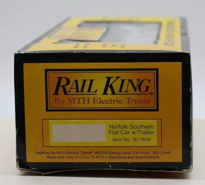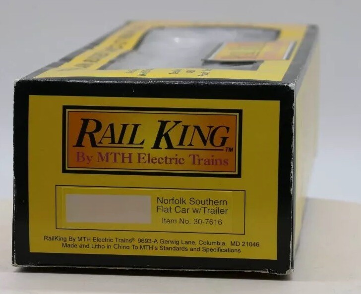 MTH Rail King Norfolk Southern Flat Car w/Trailer Triple Crown 30-7616 (NIB) If you are purchasing more than one item from us and would like combined shipping, PLEASE request an adjusted invoice from us while still in the cart and BEFORE paying. Ebay does not usually calculate combined shipping accurately and you might get overcharged. Please be aware that when we photograph items, we use lighting that will show the details well. Although we try to present the product as accurately as possible, the lighting may affect the overall look of the item by appearing lighter/darker or possibly a different hue than the actual item. Depending on the type of lighting you have in your home, there may be some differences between the photos and the actual item. If this is a concern of yours, please feel free to request additional photos made in natural lighting or ask for a more detailed description of the item PRIOR TO PURCHASE! PLEASE NOTE: We greatly appreciate your interest in our item for sale. We look forward to a pleasant, quick and satisfying transaction for everybody, so please note the following information before bidding. Thank you! ITEM DESCRIPTIONS: * We will try to describe items well and provide plenty of photos. Please review these carefully before bidding or purchasing. * Only the items pictured and described are what you will receive when purchased. * We will occasionally offer an item clearly marked "AS-IS". This means that we are not sure if it works because we are unable to test it for whatever reason. We will offer these at a discounted price then a similar "working" item. It is possible that these items will work fine, but it also is possible that these items are more useful for their parts. Please only bid on or purchase these items if you are well aware of this, as we will only provide refunds of actual item price (no shipping cost refunds) for these items. * If you have any questions that aren't addressed by the descriptions or photos, please feel free to ask before you bid. SHIPPING: * We offer international shipping, if you have any questions please reach out. * We try to pack items as carefully as possible, but damage may occur during shipping. If you receive an item that was damaged in shipping, please contact us and we will work with you to resolve the problem. * We will combine shipping costs for all items the same buyer purchases from us within 2 days. Please wait to pay for items until you're done shopping with us. Please contact us if you're expecting to buy more items from us, or to have us adjust the shipping costs. * We will usually ship items out within 24 hours of payment being received Sunday through Friday at noon. We will notify the buyer if there will be a delay in shipping for some reason. Please allow additional time for holidays and weekends when the post office is closed. If payment is received after noon (EST) on Friday, the item might not be shipped until the following Monday. * We do try to recycle shipping materials as much as possible. RETURNS: We abide by eBay's Money Back Guarantee. We definitely want our customers to be happy with their purchase! You may return an item within 30 days of receiving it with the following guidelines: * If the item is defective or damaged (unless we clearly marked the listing "AS-IS"), the buyer will receive a full refund after the buyer returns it and it is received by us. Customers who falsely claim their item is defective, damaged, or not as described in order to receive a full refund and free return shipping will be permanently blocked from making future purchases from us. * If the item is as described (including "AS-IS" items) and the buyer decides for any other reason than defective/damaged to return it, only the actual price of the item will be refunded once it has been returned and it is received by us. The buyer will be asked to pay all original and return shipping charges. This includes all reasons other than defective/damaged, including wrong size, wrong type, changed mind, etc. All "AS-IS" items will fall into this category of return. Please make sure the item is what you want before purchasing it. * Please contact us before initiating a refund request. FEEDBACK: We always leave feedback at the end of transaction. We consider the transaction to be over when we receive feedback from the buyer confirming the item arrived satisfactorily. If you are unsatisfied with your purchase please contact us before leaving neutral or negative feedback. WE APPRECIATE POSITIVE FEEDBACK IF YOU ARE SATISFIED WITH YOUR PURCHASE! THANK YOU FOR YOUR INTEREST IN THIS ITEM!