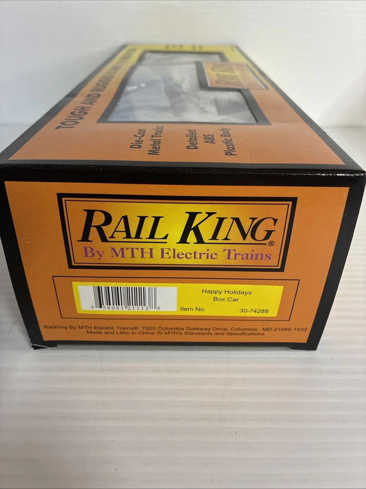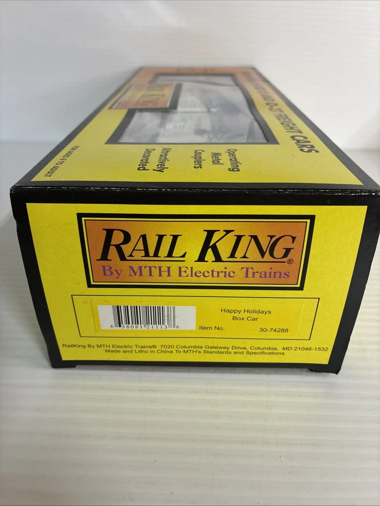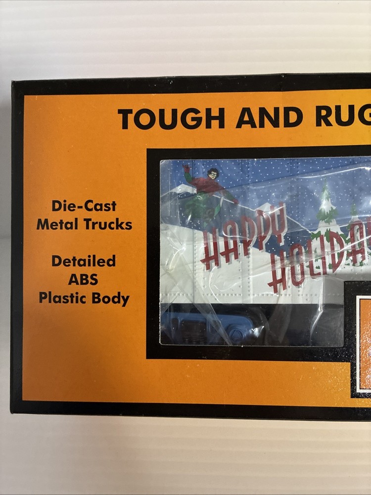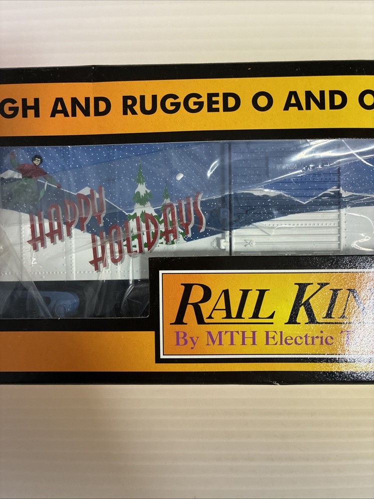The MTH RailKing 2005 Happy Holidays Box Car #30-74288 is a brand new O-Gauge model train accessory designed for both boys and girls ages 14 and up. Made of plastic and featuring a multi-color paint job, this pre-built box car is ready to go on a 3-rail system. With a Christmas theme and corporate roadname of Holiday, this collectible item is perfect for adding to a model railroad setup or for displaying as a standalone piece. Ideal for model railroading enthusiasts looking to expand their collection with a festive touch.