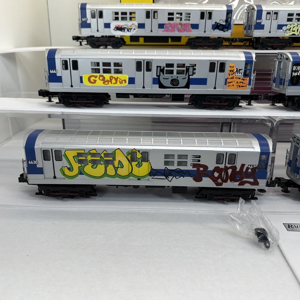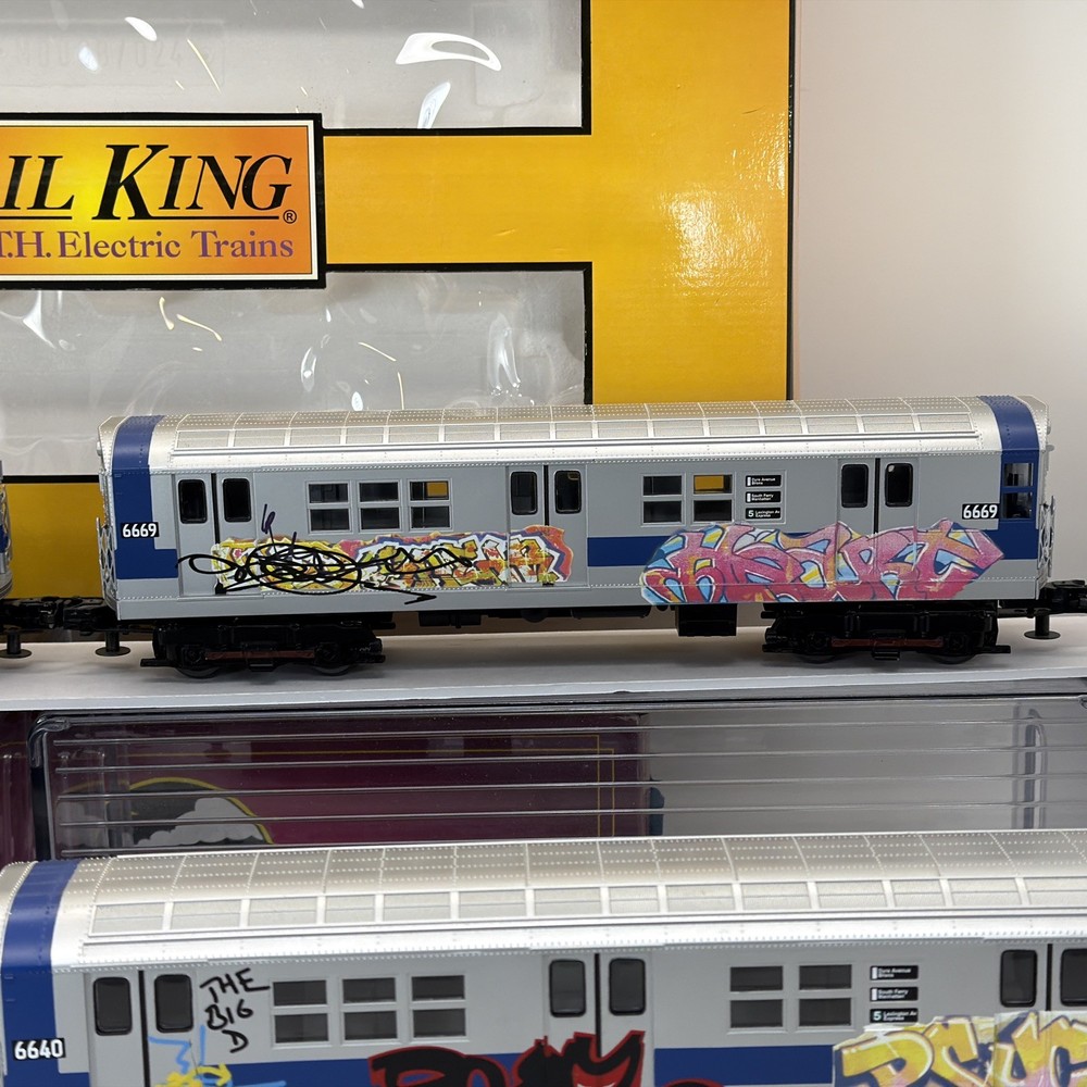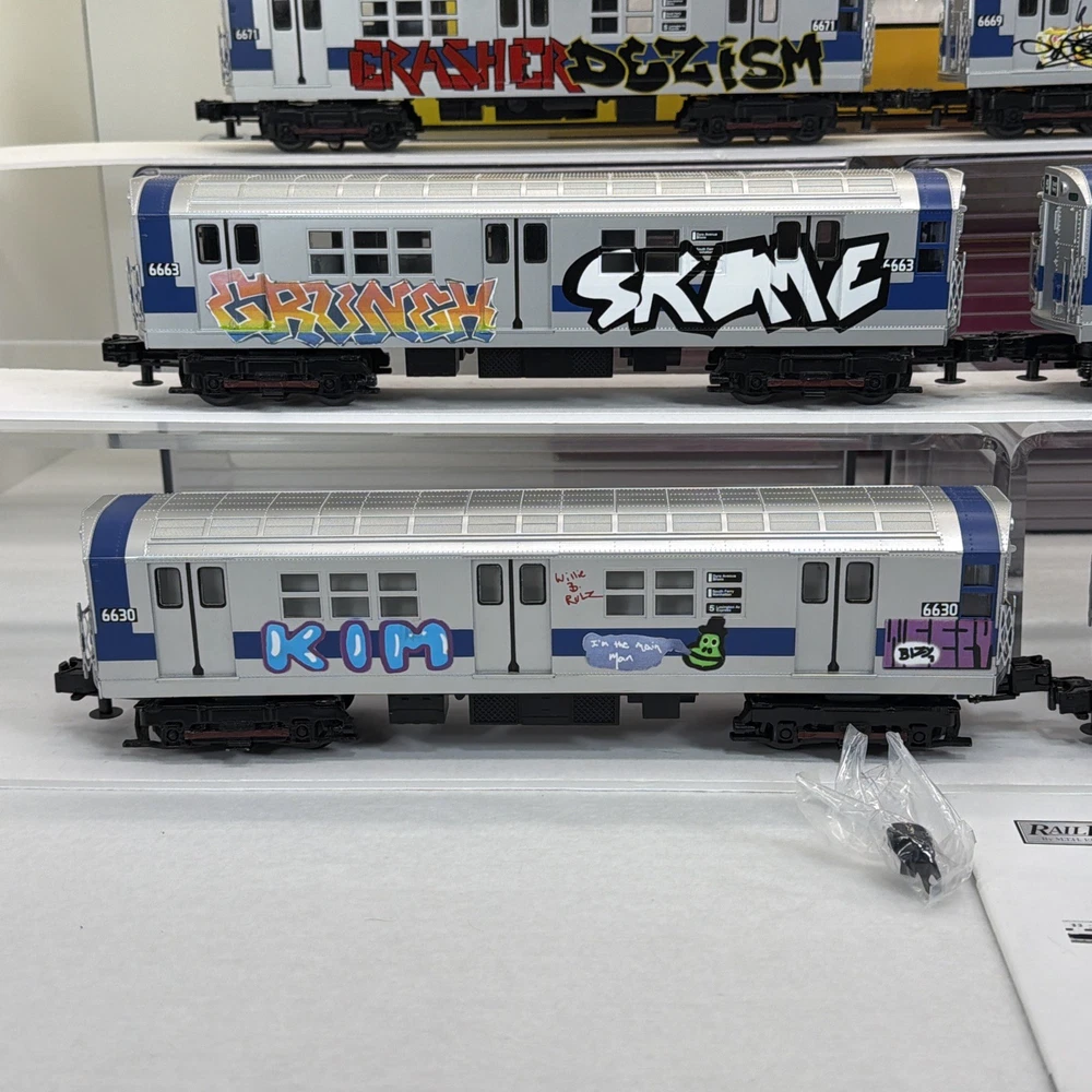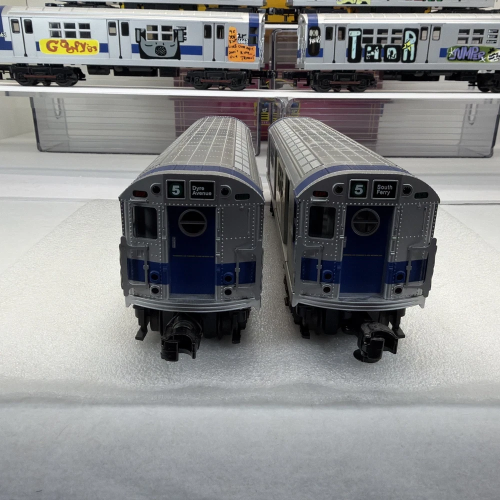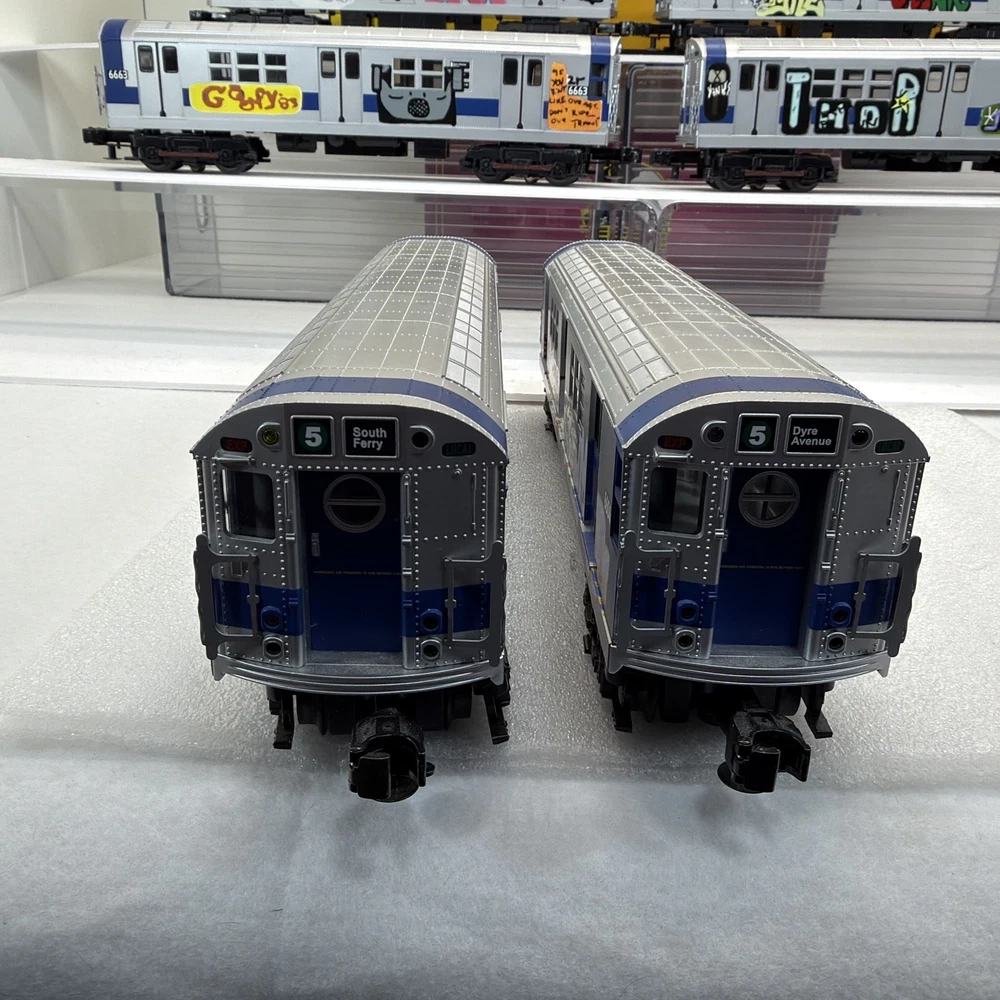 MTH RAILKING GRAFFITI R-17 6-CAR SUBWAY SET WITH PROTOSOUND 2 O GAUGE THREE RAIL POWER/DUMMY/DUMMY/DUMMY/DUMMY/DUMMY 4 CAR SET 30-2391-1 3 VOLT BOARD 2 CAR ADD-ON SET 30-2393-3 ORIGINAL BOX! USED!! BENCH TESTED WITH DCS AND ALL FUNCTIONS WORKING PROPERLY . DCS SHOWS 956 SCALE MILES. INSTRUCTION MANUAL.. NICE SOUND. 3 VOLT BATTERY TESTED OK. HARD TO FIND SET. WITH ADD-ON SET. MISSING ORIGINAL BOX FOR ADD-ON SET. ONE POWER UNIT. 5 DUMMY CARS. - Directionally Controlled Headlights - Intricately Detailed ABS Bodies - Metal Wheels and Axles - Remotely Controlled Proto-Couplerr - Authentic Paint Scheme - Operates On O-31 Track - All Metal Wheels and Gears - Illuminated Number Boards - (2) Precision Flywheel Equipped Motors In Powered Unit - Locomotive Speed Control - Metal Chassis - Die-Cast Truck Sides - Lighted Interior - Proto-Sound 2.0 With The Digital Command System Featuring:- Station Stop Proto-Effects - Unit Measures:82 1/2" x 2 1/2" x 3 1/2" Winning US bidder receives FREE SHIPPING USPS UPS! Canada Priority shipping is available . All other countries please email for a mailing quote. Thanks for looking I ship everyday!!!!