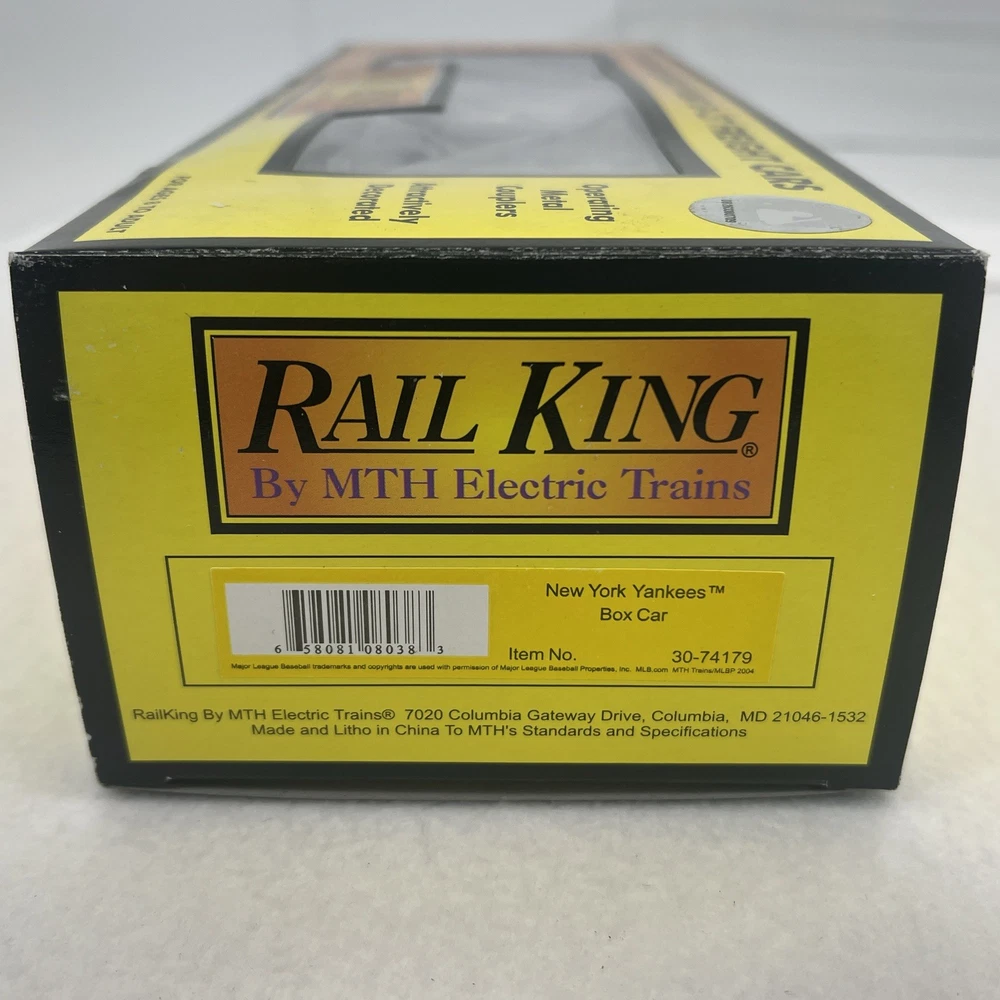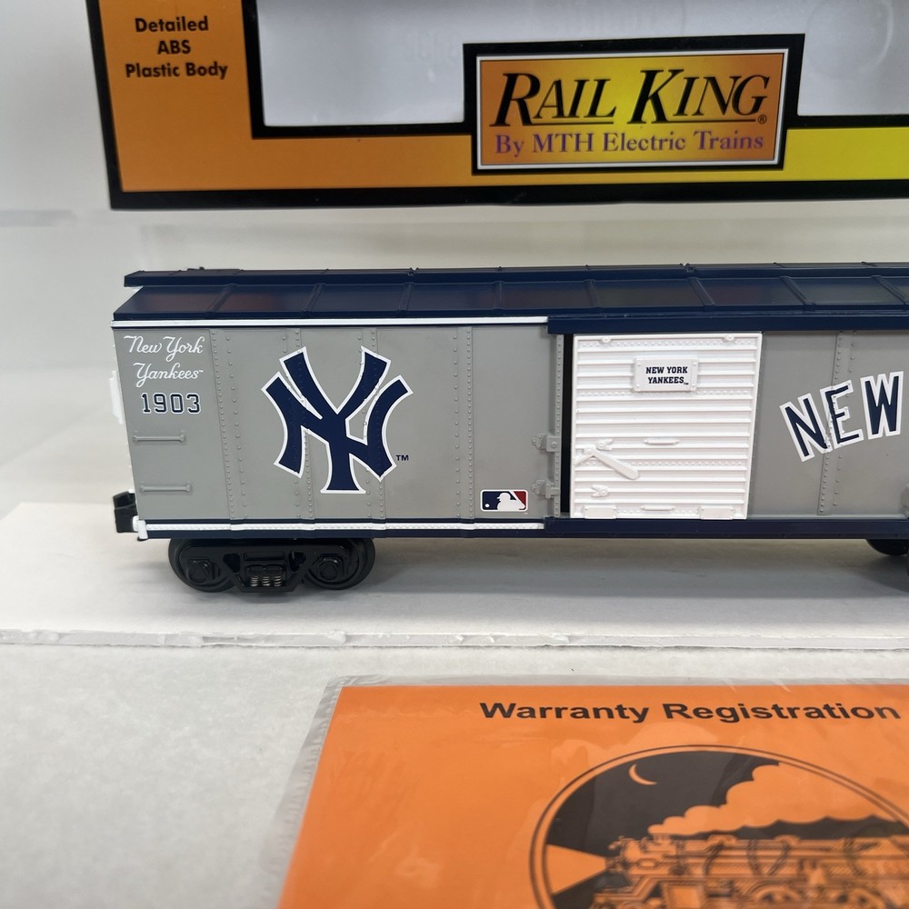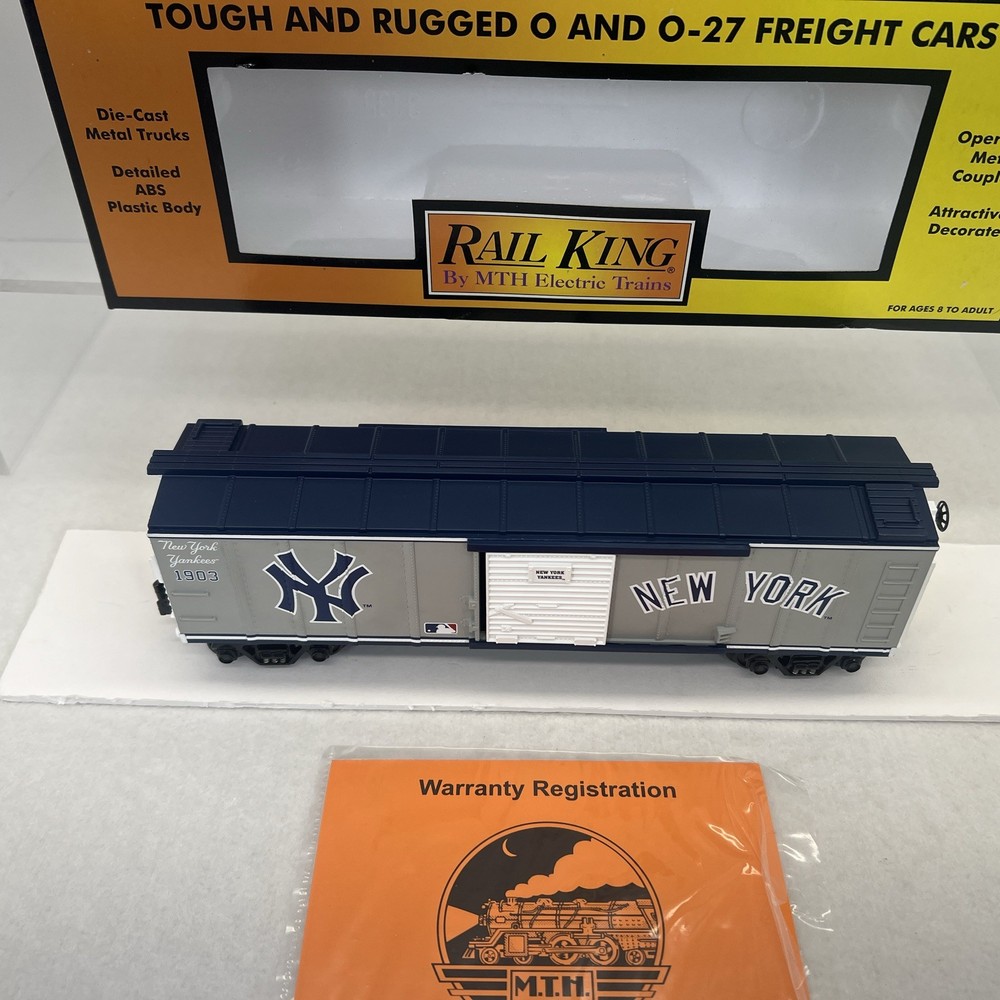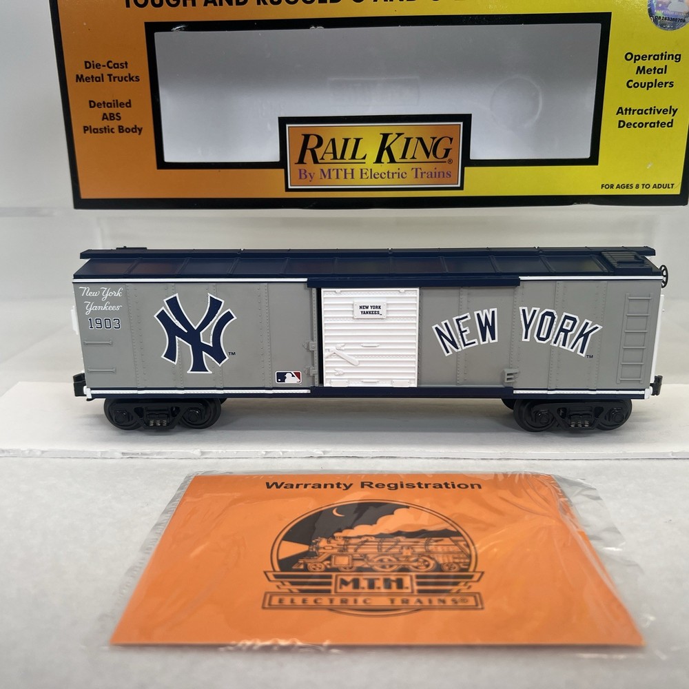 MTH RAILKING MLB BASEBALL NEW YORK YANKEES BOXCAR O GAUGE 3 RAIL 30-74179 COMES IN ORIGINAL BOX. NEW. WILL BE PACKED TO ENSURE SAFE DELIVERY! Winning US bidder receives FREE SHIPPING USPS Priority UPS ! Canada Priority shipping is available . All other countries please email for a mailing quote. Thanks for looking! I ship everyday!!!!