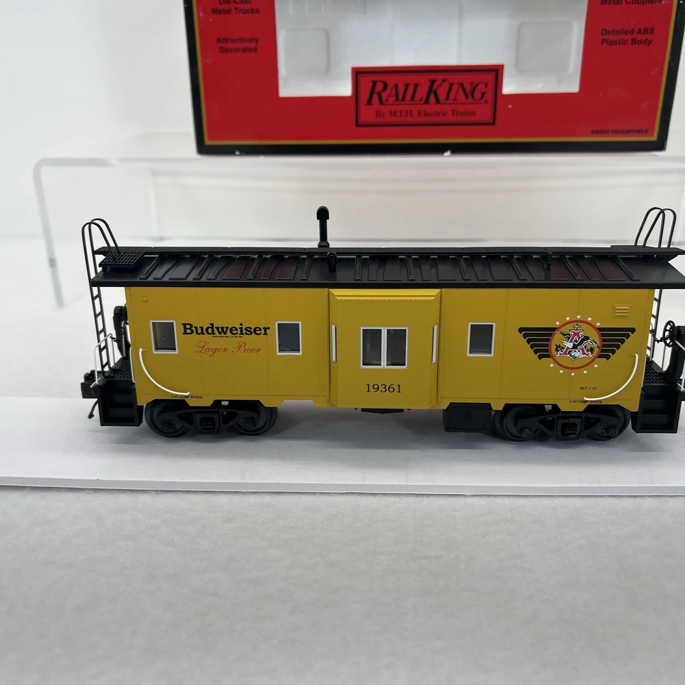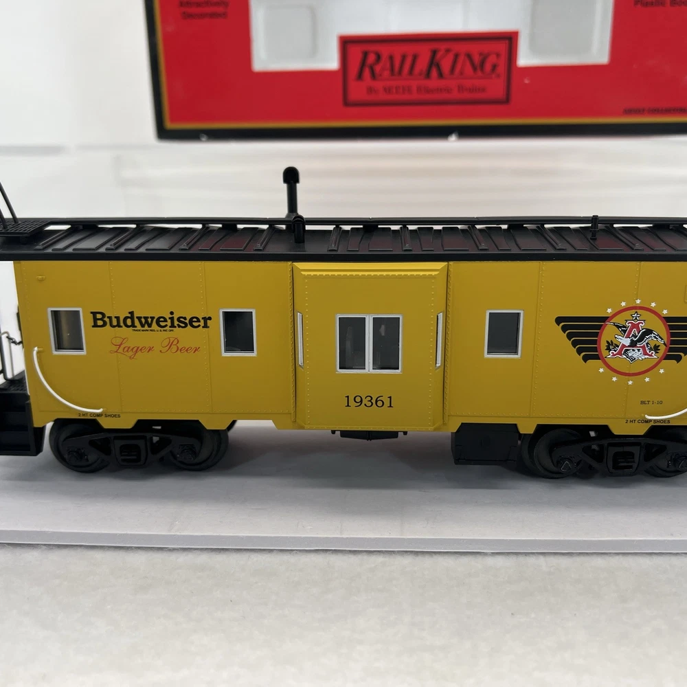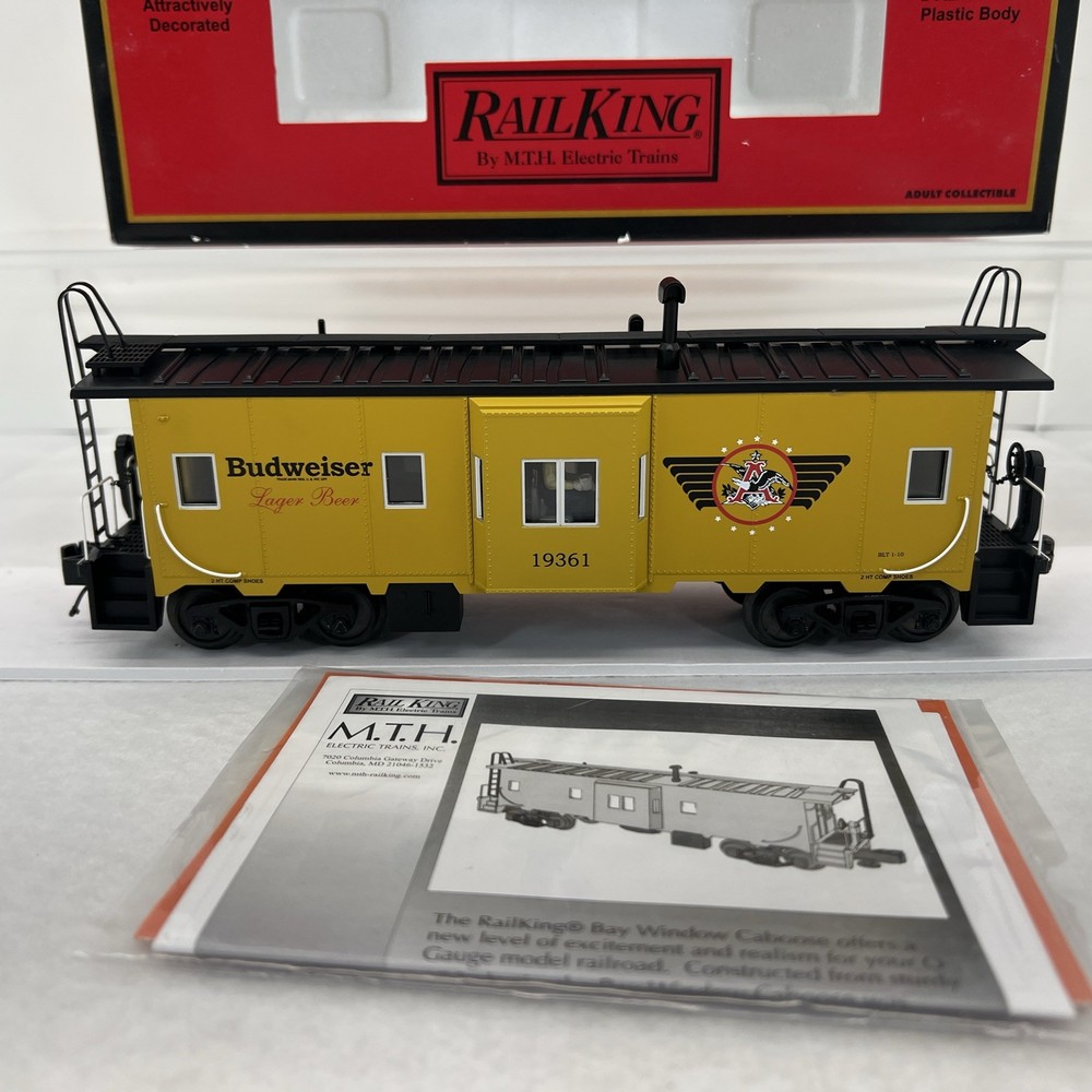 MTH RAILKING #19361 ANHEUSER-BUSCH BUDWEISER BAY WINDOW CABOOSE O/O-27 GAUGE 3 RAIL 30-77171 COMES IN ORIGINAL BOX. NEW!! WILL BE PACKED TO ENSURE SAFE DELIVERY! Winning US bidder receives FREE SHIPPING USPS Priority UPS ! Canada Priority shipping is available . All other countries please email for a mailing quote. Thanks for looking! I ship everyday!!!!