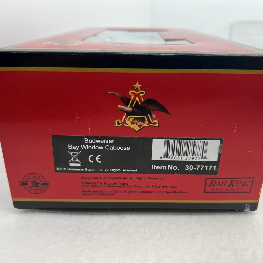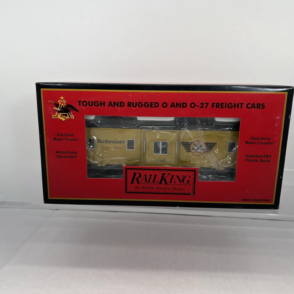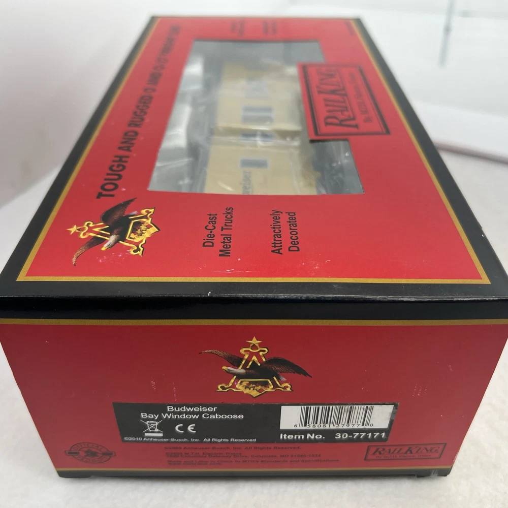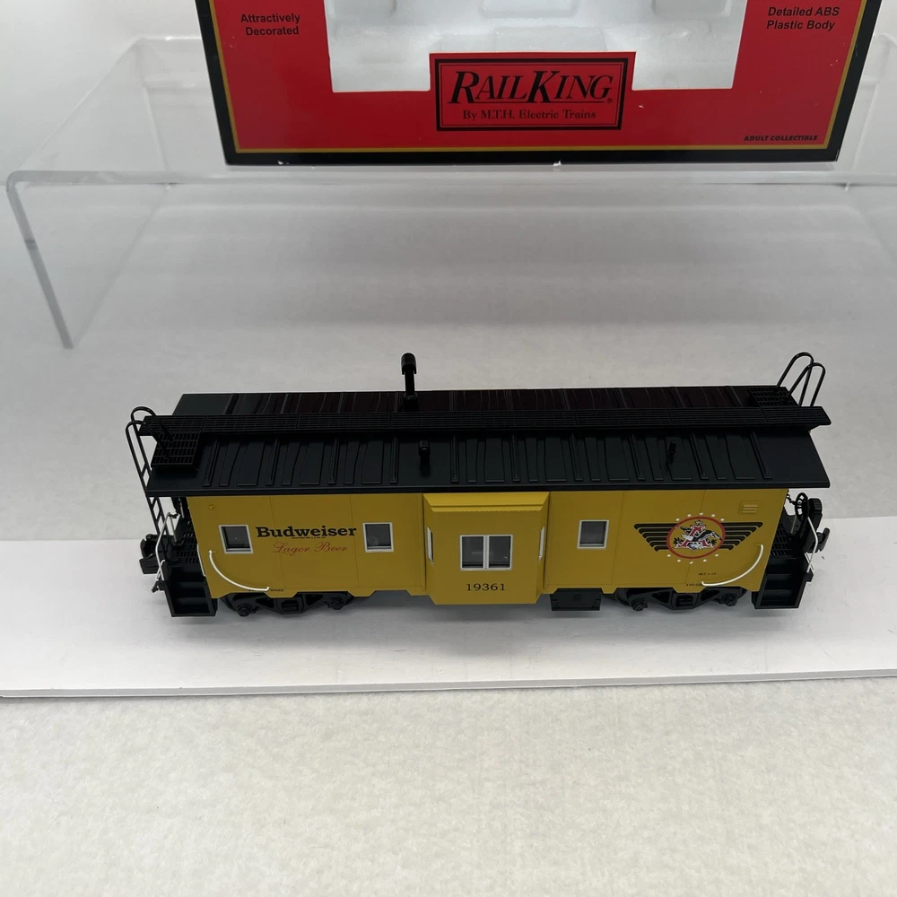 MTH RAILKING #19361 ANHEUSER-BUSCH BUDWEISER BAY WINDOW CABOOSE O/O-27 GAUGE 3 RAIL 30-77171 COMES IN ORIGINAL BOX. NEW!! WILL BE PACKED TO ENSURE SAFE DELIVERY! Winning US bidder receives FREE SHIPPING USPS Priority UPS ! Canada Priority shipping is available . All other countries please email for a mailing quote. Thanks for looking! I ship everyday!!!!