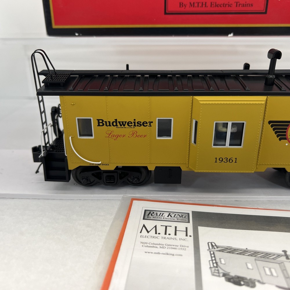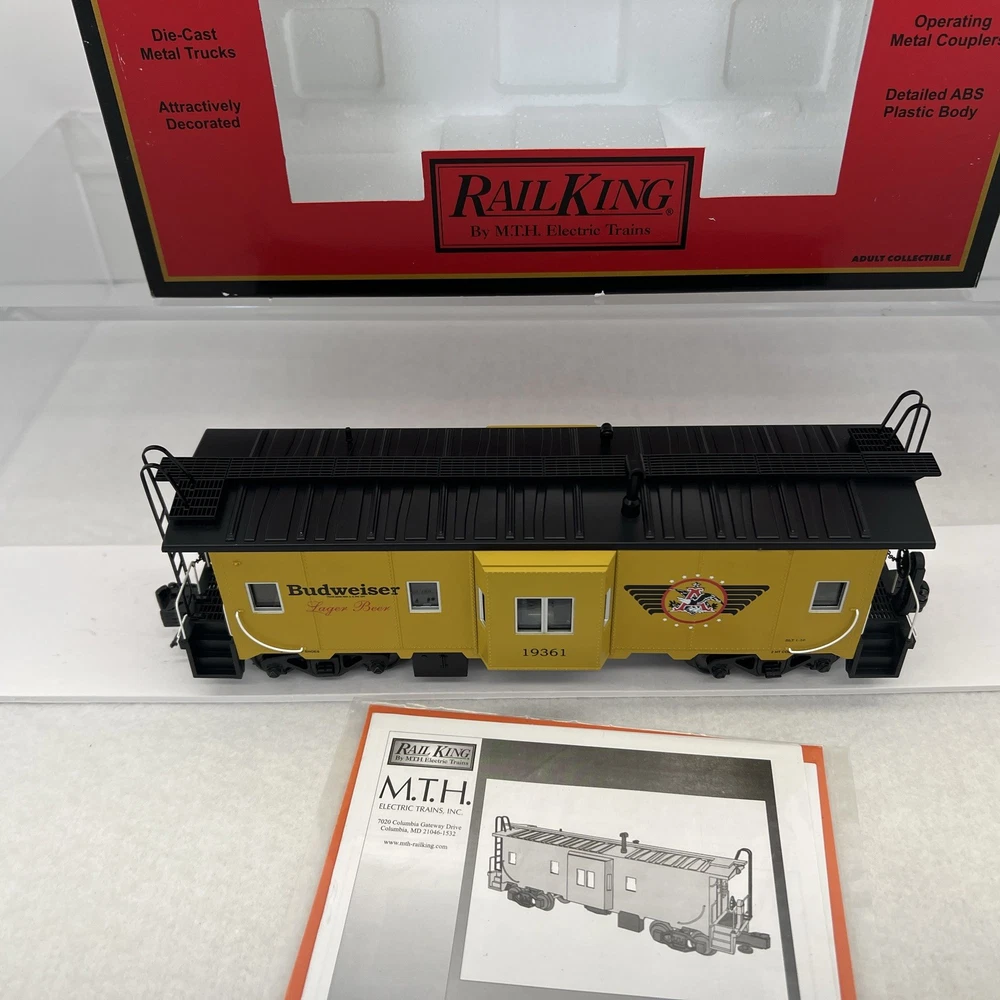 This MTH RailKing Budweiser caboose is awesome! The detail is amazing, and it looks brand new in the original box. Super fast shipping, packed with care—arrived perfect. Runs smooth on my O-gauge layout, and the free US shipping was a nice bonus. Highly recommend this seller!