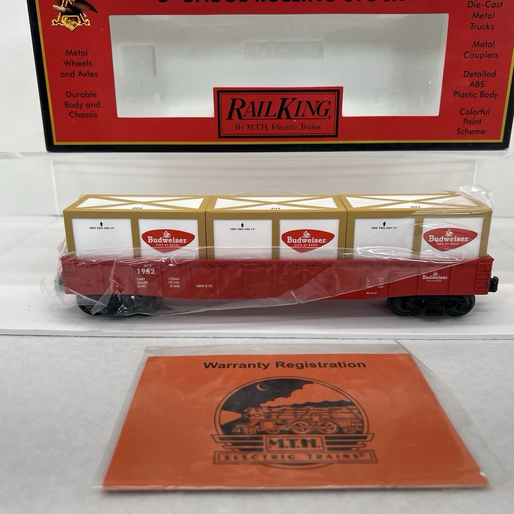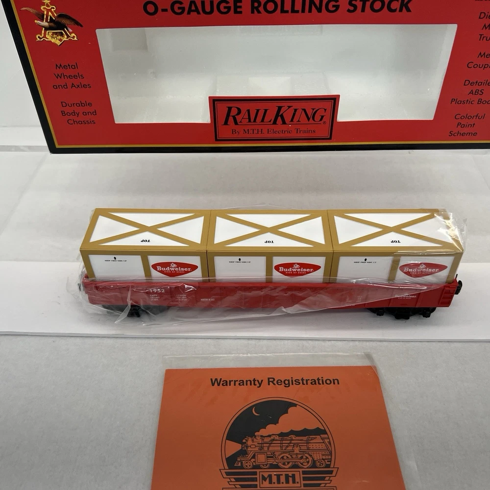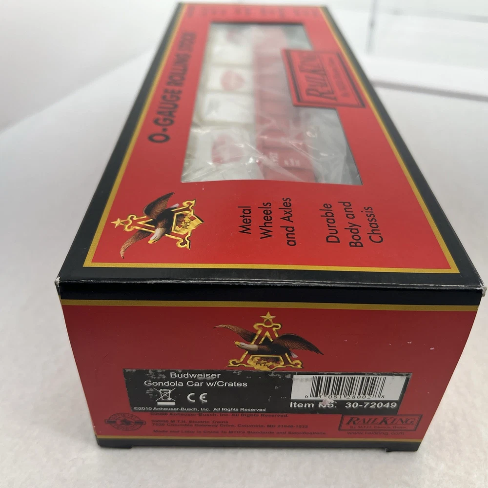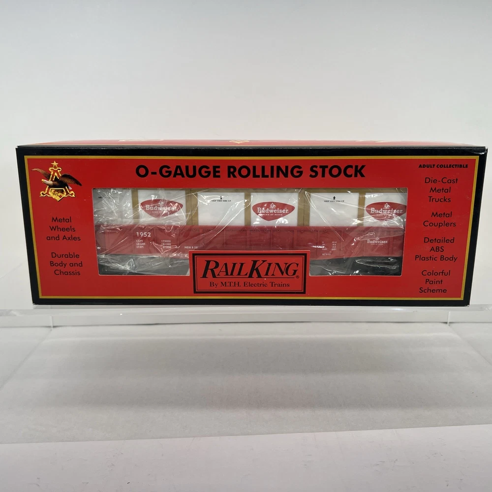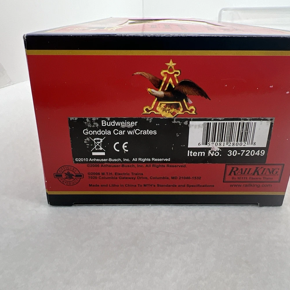 MTH RAILKING #1952 ANHEUSER BUSCH BUDWEISER GONDOLA CAR WITH CRATES O GAUGE 3 RAIL 30-72049 COMES IN ORIGINAL BOX. NEW. WILL BE PACKED TO ENSURE SAFE DELIVERY! Winning US bidder receives FREE SHIPPING USPS Priority UPS ! Canada Priority shipping is available . All other countries please email for a mailing quote. Thanks for looking! I ship everyday!!!!