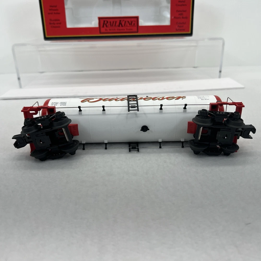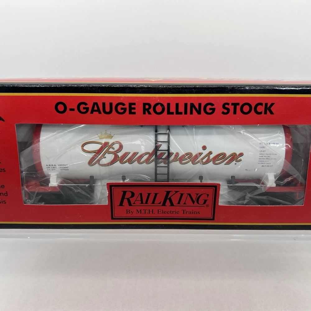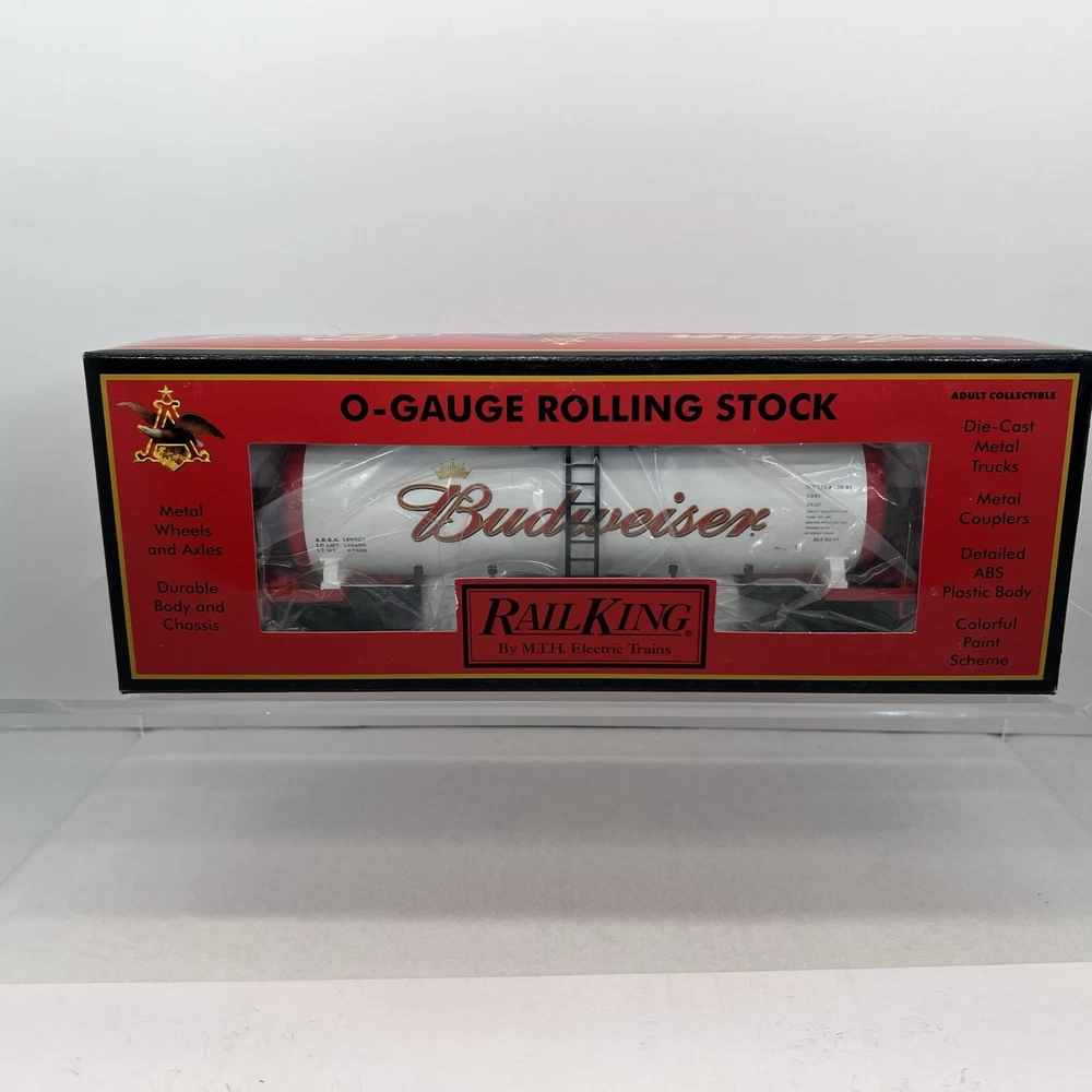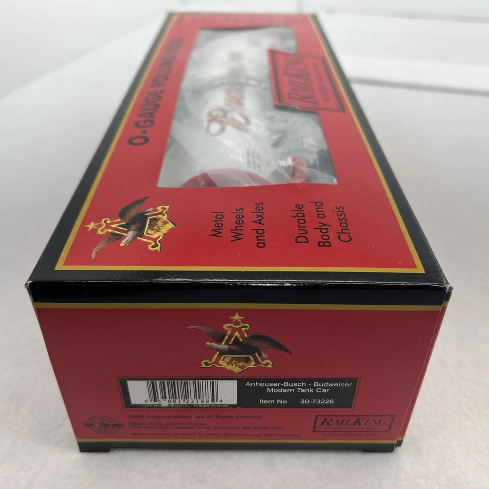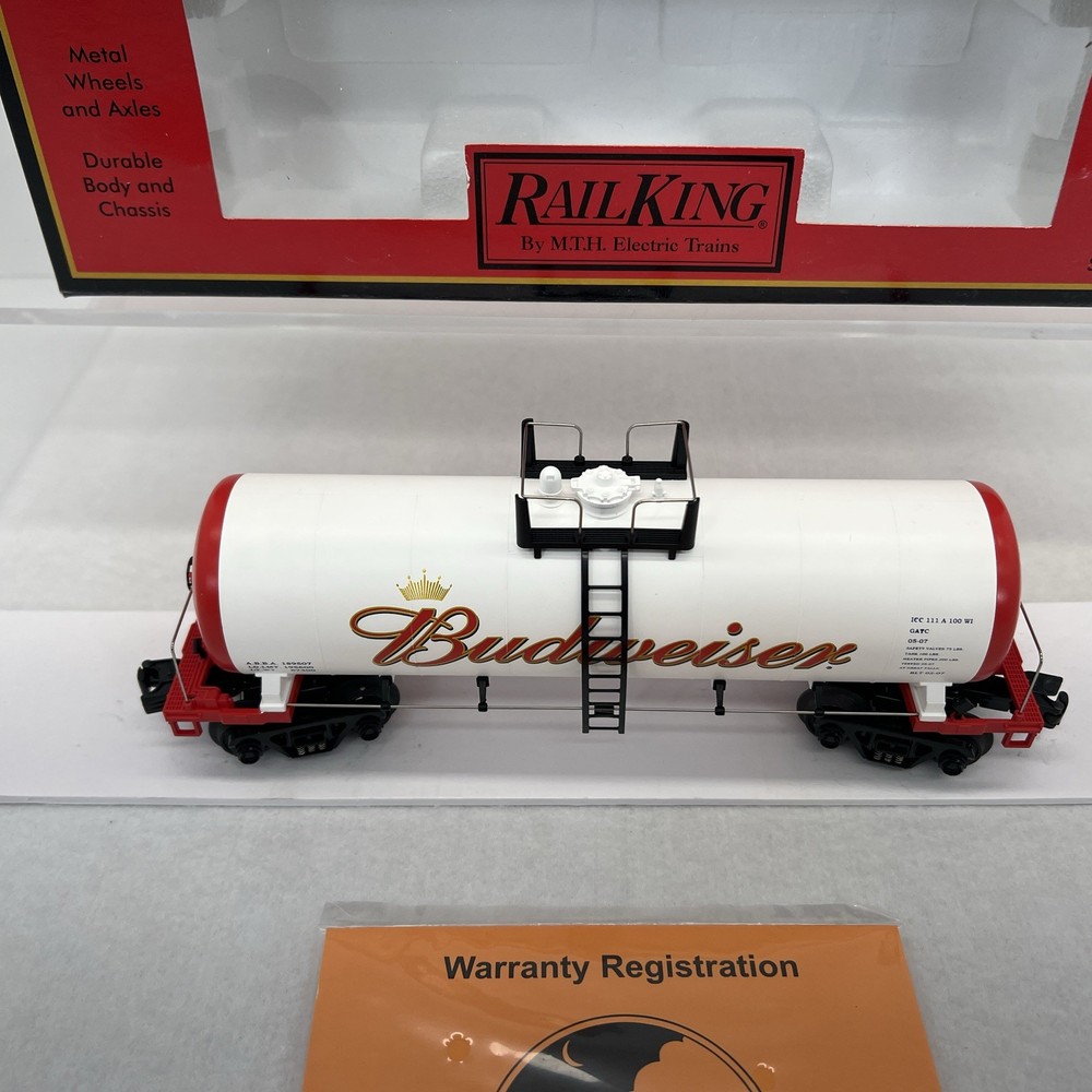 MTH RAILKING ANHEUSER BUSCH BUDWEISER MODERN TANK CAR O GAUGE 3 RAIL 30-73226 COMES IN ORIGINAL BOX. NEW. WILL BE PACKED TO ENSURE SAFE DELIVERY! Winning US bidder receives FREE SHIPPING USPS Priority UPS ! Canada Priority shipping is available . All other countries please email for a mailing quote. Thanks for looking! I ship everyday!!!!