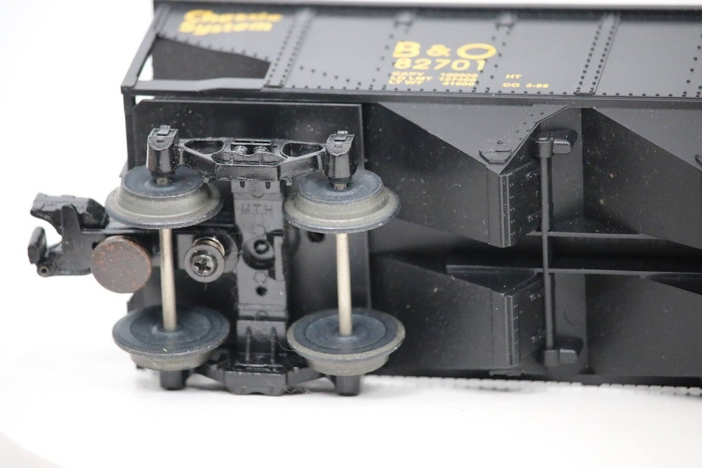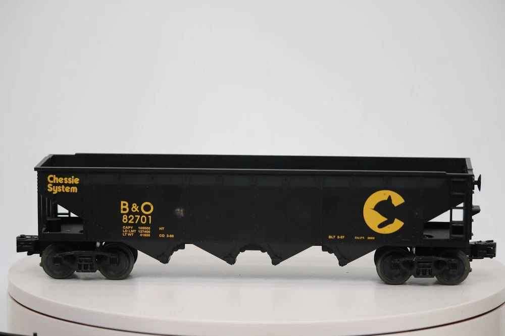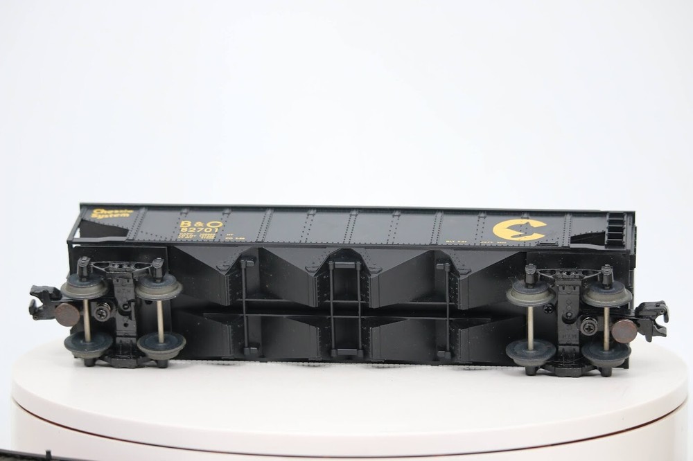 MTH Railking Chessie Hopper 30-7514 SKU#007811 Look closely at the pictures to see further details. PLEASE see photos for detailed condition!! PLEASE LOOK AT THE PHOTOS CAREFULLY BEFORE PURCHASING!! If you are purchasing more than one item from us and would like combined shipping, PLEASE request an adjusted invoice from us while still in the cart and BEFORE paying. eBay does not usually calculate combined shipping accurately and you might get overcharged. Please be aware that when we photograph items, we use lighting that will show the details well. Although we try to present the product as accurately as possible, the lighting may affect the overall look of the item by appearing lighter/darker or possibly a different hue than the actual item. Depending on the type of lighting you have in your home, there may be some differences between the photos and the actual item. If this is a concern of yours, please feel free to request additional photos made in natural lighting or ask for a more detailed description of the item PRIOR TO PURCHASE! There may be pieces that are missing or broken including, but not limited to, couplers, brake wheels, steps, ladders, railings, etc. May need detailed cleaning. PLEASE NOTE: We greatly appreciate your interest in our item for sale. We look forward to a pleasant, quick and satisfying transaction for everybody, so please note the following information before bidding. Thank you! ITEM DESCRIPTIONS: * We will try to describe items well and provide plenty of photos. Please review these carefully before bidding or purchasing. * Only the items pictured and described are what you will receive when purchased. * We will occasionally offer an item clearly marked "AS-IS". This means that we are not sure if it works because we are unable to test it for whatever reason. We will offer these at a discounted price then a similar "working" item. It is possible that these items will work fine, but it also is possible that these items are more useful for their parts. Please only bid on or purchase these items if you are well aware of this, as we will only provide refunds of actual item price (no shipping cost refunds) for these items. * If you have any questions that aren't addressed by the descriptions or photos, please feel free to ask before you bid. SHIPPING: * We offer international shipping, please feel free to contact us if you have any questions. * We try to pack items as carefully as possible, but damage may occur during shipping. If you receive an item that was damaged in shipping, please contact us and we will work with you to resolve the problem. * We will combine shipping costs for all items the same buyer purchases from us within 2 days. Please wait to pay for items until you're done shopping with us. Please contact us if you're expecting to buy more items from us, or to have us adjust the shipping costs. * We will usually ship items out within 24 hours of payment being received Sunday through Friday at noon. We will notify the buyer if there will be a delay in shipping for some reason. Please allow additional time for holidays and weekends when the post office is closed. If payment is received after noon (EST) on Friday, the item might not be shipped until the following Monday Or Later If Monday Is Holiday. * We do try to recycle shipping materials as much as possible. RETURNS: We abide by eBay's Money Back Guarantee. We definitely want our customers to be happy with their purchase! You may return an item within 30 days of receiving it with the following guidelines: * If the item is defective or damaged (unless we clearly marked the listing "AS-IS"), the buyer will receive a full refund after the buyer returns it and it is received by us. Customers who falsely claim their item is defective, damaged, or not as described in order to receive a full refund and free return shipping will be permanently blocked from making future purchases from us. * If the item is as described (including "AS-IS" items) and the buyer decides for any other reason than defective/damaged to return it, only the actual price of the item will be refunded once it has been returned and it is received by us. The buyer will be asked to pay all original and return shipping charges. This includes all reasons other than defective/damaged, including wrong size, wrong type, changed mind, etc. All "AS-IS" items will fall into this category of return. Please make sure the item is what you want before purchasing it. * Please contact us before initiating a refund request, issues, questions or concerns. We will do our best to get back to you as quickly as we can. Thank you and if you read this far... you are awesome and we hope you have a great day!! FEEDBACK: We always leave feedback at the end of transaction. We consider the transaction to be over when we receive feedback from the buyer confirming the item arrived satisfactorily. If you are unsatisfied with your purchase please contact us before leaving neutral or negative feedback. WE APPRECIATE POSITIVE FEEDBACK IF YOU ARE SATISFIED WITH YOUR PURCHASE! THANK YOU FOR YOUR INTEREST IN THIS ITEM!