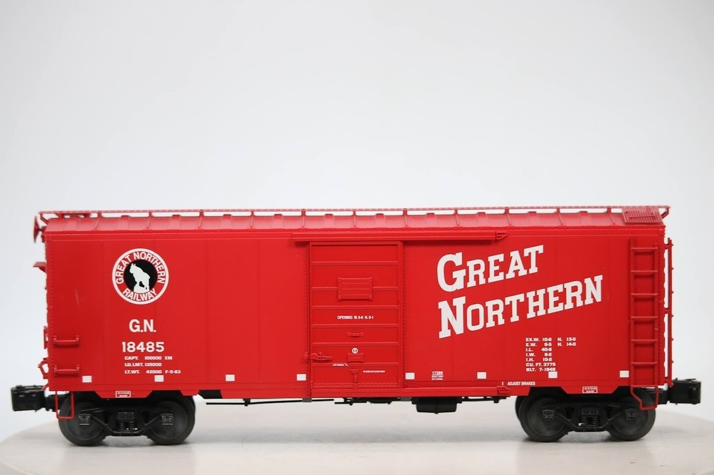 MTH Railking O Gauge Trains #34028 Great Northern Box Car 30-74729 SKU#009880 MTH RailKing O Gauge Great Northern Box Car #18485 – Used, Excellent Condition Elevate Your Freight with Great Northern Heritage Add railroading authenticity to your O gauge layout with this MTH RailKing box car , beautifully decorated in the classic Great Northern Railway livery. Known for its remarkable stability and smooth rolling performance, this 40-foot box car brings both operational reliability and historic appeal to your consist. Why This Great Northern Box Car Hits the Mark Iconic Railroad Branding : Adorned with the distinctive Great Northern logo and color scheme, evoking the legacy of one of America’s western railroads. RailKing Build Quality : Durable trucks, a weighty metal body, and smooth couplers deliver dependable performance on modern O gauge layouts. Used, Excellent Condition (C-8) : Lightly handled, showing minimal signs of use. A quick polish or dusting can make it pop like new. Collector-Friendly Piece : Strong balance of nostalgia, scale accuracy, and operational reliability for hobbyists and rail enthusiasts alike. Collector Appeal Perfect for Great Northern themed consists , mountain-era freight runs, or mixed western displays. Provides visual contrast and authenticity next to steam or diesel era locomotives. A superb option for both serious modelers and casual collectors—great value retained thanks to its condition and performance. Product Details Feature Description Brand MTH RailKing Model Number #18485 Livery Great Northern Railway Scale O Gauge (1:48) Condition Used, Excellent (C-8) Region Compatible with Lionel and MTH layouts Shipping & Returns Ships securely and quickly from Ithaca, NY 30-day free returns —shop with confidence Combined shipping available —stack and save on multiple items Why Collectors Trust CHOO CHOO BOYS Top Rated Plus Seller with 99% positive feedback Over 12,000 successful sales of model trains, die-cast, and collectibles Specialists in MTH, Lionel, vintage trains, and hobby treasures Fast handling, careful packaging, and collector-grade service in every order This MTH RailKing Great Northern box car isn’t just freight—it’s a rolling tribute to western rail history, wrapped in RailKing durability and classic design. PLEASE READ BEFORE PURCHASING Condition: Please review all photos carefully for details on the item's condition. Photos are part of the description, and any notable flaws will be highlighted. Combined Shipping: If purchasing multiple items, request a revised invoice before paying to ensure accurate combined shipping costs. eBay's system may not calculate this correctly, leading to overcharges. Lighting Disclaimer: Photos are taken under bright lighting to highlight details, which may cause slight variations in color or hue depending on your lighting. If you need additional photos (e.g., in natural light) or more details, please ask before purchasing. As-Is Items: Items come AS-IS. The way they appear in our pictures is how the Item will arrive to you. What's Included: Only the items shown in the photos and described in the listing are included in the purchase. We strive to describe items thoroughly and provide clear photos. If you have any questions or concerns not addressed in the listing, feel free to ask before purchasing. Thank you for shopping with us!