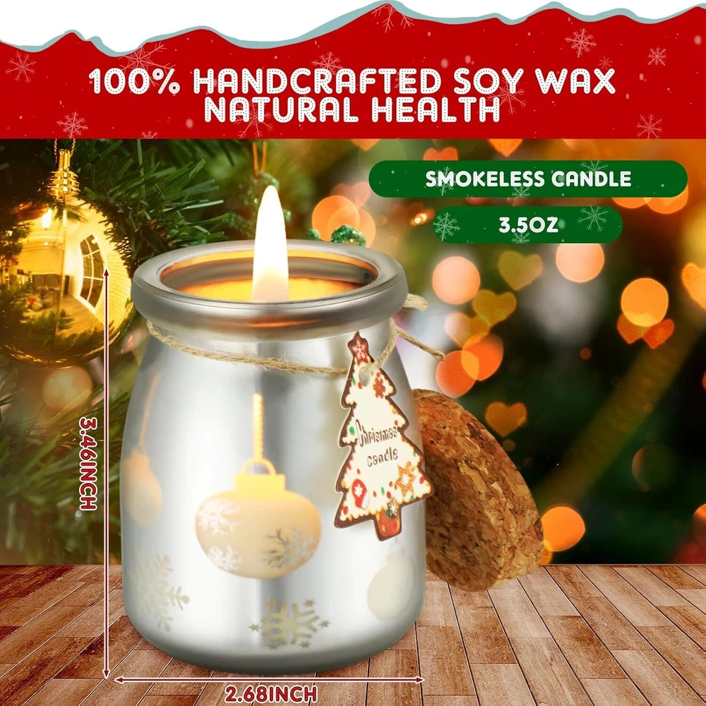 MTLEE 8 Pcs Christmas Scented Candles Gift Set frosted yellow, clear Product Details Product Dimensions : 2.68 x 2.68 x 3.46 inches; 5.03 Pounds Item model number : MTLEE-fri-240823a Manufacturer : MTLEE Brand: MTLEE Color: frosted yellow, frosted clear Product Dimensions: 2.68"W x 3.46"H Number of Items: 8 Scent: lavender, rose, sea salt, grapefruit, bergamot, hyacinth, freesia, wild bluebell Indoor/Outdoor Usage: Indoor Specific Uses For Product: Home Fragrance Shape: Cylindrical Material: soy wax and cotton candle wicks Container Material: Glass Enough Quantity: you will receive 8 Christmas scented candles in 2 different styles, ideal for everyday use, weddings, events, aromatherapy, mood lighting, atmosphere lighting, and Christmas holiday decorations; Each candle is 3.5 ounces and burns for about 35 hours Quality Material: crafted from soy wax and featuring cotton candle wicks, our Christmas scented candles ensure a clean and even burn; This combination not only enhances the candle's longevity but also minimizes soot, making it a healthier choice for your home Reusable Packaging: the Christmas soy candles come in reusable glass bottles after they have burned down, you can repurpose the stylish containers for storage or as decorative pieces, making them a practical choice; You can add them to your home decorations, or use them to store small items Attractive Design: encased in frosted yellow and frosted clear bottles, these Xmas aromatherapy candles feature charming patterns of Christmas trees snowflakes, and elk; Their aesthetic appeal makes them a lovely addition to your holiday decoration, enhancing the festive spirit of the room Ideal Gift Set: the package is an ideal gift set for friends and family; Whether for holiday celebrations or as a token of appreciation, this collection is sure to bring joy and warmth to your loved ones during the festive season Features: Each Christmas candle offers a delightful blend of scents, including lavender, rose, sea salt, grapefruit, bergamot, hyacinth, freesia, and wild bluebell. These fragrances create a warm, inviting ambiance that complements your Christmas celebrations, filling your space with holiday cheer. Each Holiday candle weighs 3.5 ounces and burns for approximately 35 hours, providing long lasting enjoyment throughout the holiday season. This ample burn time allows you to savor the scents during family gatherings or festive parties. Specifications: Material: soy wax and cotton candle wicksBottle color: frosted yellow, frosted clearBottom diameter: about 2.68 inches/ 6.8 cmHeight without cork: about 3.46 inches/ 8.8 cmScents: lavender, rose, sea salt, grapefruit, bergamot, hyacinth, freesia, wild bluebellPackage includes: 8 x Christmas scented candlesNotes: Manual measurement, please allow slight errors on size. The color may exist a slight difference due to different screen displays. Burning may produce a pungent smell. Open flame may pose a risk of burns, please keep away from children.