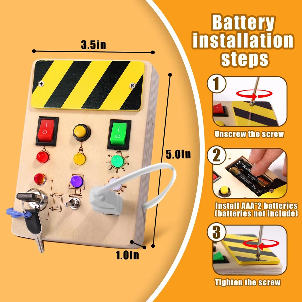 MTTIERY Montessori Busy Board for Toddlers with LED Light Up Switch, Boys Girls Birthday Sensory Toys for 3-13Year Olds 【Educational Learning Toys 】 This wooden busy board improves your child's dexterity, eye and hand coordination for fine motor skills and pure fun. It's a great Montessori toy for toddlers and a great learning and educational toy to replace screen time. 【 Toddler Montessori Busy Board 】This busy board is designed for toddlers who love switches and LED lights. This busy board is set with 10 different switches, each corresponding to a different color or style of LED light. The brightness of each LED is adjusted to be suitable for your baby, not too bright, too harsh or too dark to see.The board also comes with a mirror to keep your child occupied throughout the journey! 【High Quality Sensory Toys】 Our toddler fidget toys are made of eco-wood, the product has smooth edges and all the various buttons, switches and shifters are securely installed. The busy board is high quality and very sturdy. You don't have to worry about your baby breaking it, it is very safe for your child. The light is soft and won't hurt children's eyes 【Fit Size】This product measures 7*6*1 inches. This busy board for 3 year olds is suitable for different scenarios, such as at home, on the airplane, in the car, during travel. It's a perfect travel toy to keep your baby quiet and do their own thing. 【Ideal Perfect Gift】This Montessori busy board is the perfect birthday Christmas gift for your child. Toddlers can use this toddler busy board to identify different colors and sizes. Designed to turn the boring learning process into a creative and fun one. Please bring your own 2 x 7 batteries before use 【Educational Learning Toys 】 This wooden busy board improves your child's dexterity, eye and hand coordination for fine motor skills and pure fun. It's a great Montessori toy for toddlers and a great learning and educational toy to replace screen time. 【 Toddler Montessori Busy Board 】This busy board is designed for toddlers who love switches and LED lights. This busy board is set with 10 different switches, each corresponding to a different color or style of LED light. The brightness of each LED is adjusted to be suitable for your baby, not too bright, too harsh or too dark to see.The board also comes with a mirror to keep your child occupied throughout the journey! 【High Quality Sensory Toys】 Our toddler fidget toys are made of eco-wood, the product has smooth edges and all the various buttons, switches and shifters are securely installed. The busy board is high quality and very sturdy. You don't have to worry about your baby breaking it, it is very safe for your child. The light is soft and won't hurt children's eyes 【Fit Size】This product measures 7*6*1 inches. This busy board for 3 year olds is suitable for different scenarios, such as at home, on the airplane, in the car, during travel. It's a perfect travel toy to keep your baby quiet and do their own thing. 【Ideal Perfect Gift】This Montessori busy board is the perfect birthday Christmas gift for your child. Toddlers can use this toddler busy board to identify different colors and sizes. Designed to turn the boring learning process into a creative and fun one. Please bring your own 2 x 7 batteries before use Shipping from the USA All of our products are shipped from the USA, ensuring quick delivery to your destination. Payment We offer the following payment methods: PayPal, credit card, bank transfer, and eBay's secure payment system. Free Shipping & Free Returns Shipping within the USA is FREE. Additionally, any return is absolutely free for you. Risk-Free Purchase You have the option to return an item within 30 days without any justification. We cover the return shipping costs! Fast Shipping We ship immediately upon receipt of payment. Generally, the package is delivered within 2-3 days in the USA. If it takes longer, we will contact you. Quality and Costs Made in Europe, USA, China No customs fees or additional charges Total satisfaction guarantee Invoice with declared VAT available upon request in .pdf format Feedback Your feedback is very important to us. After you pay for your purchase, you will automatically receive positive feedback from us.
