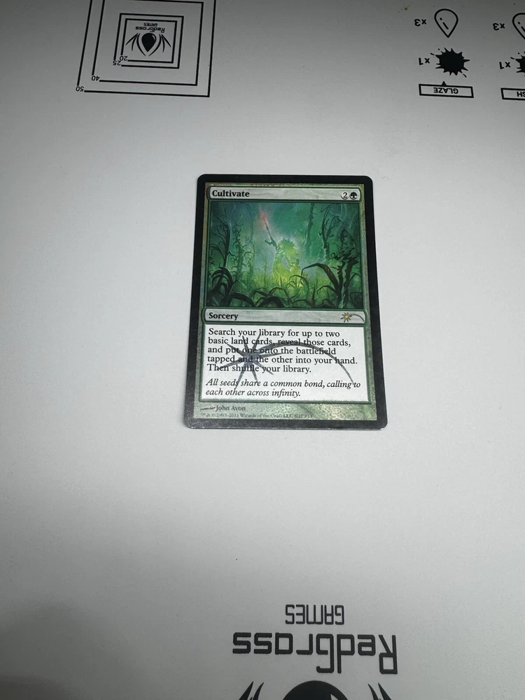 This rare MTV Cultivate Foil card is a must-have for any Magic: The Gathering collector. Featuring the iconic artwork of John Avon, this English language card is a Wizards of the Coast manufacture and is part of the Magic: The Gathering game. The card has a rarity of Promo and is in excellent shape, near Mint or better. With a cost of 2 g, this card is a great addition to any collection and is sure to impress. The card is not graded, but its quality speaks for itself. Don't miss out on the opportunity to own this unique and highly sought-after card. The card will be mailed double sleeve between 2 card stocks for protection
