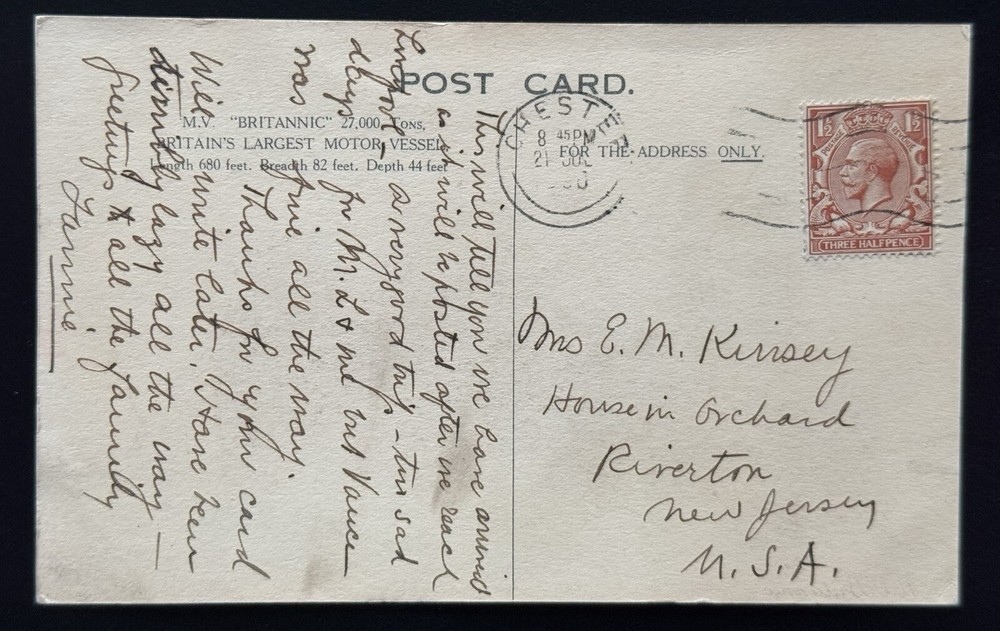 MV Britannic White Star Line Ocean Liner Vintage Postcard