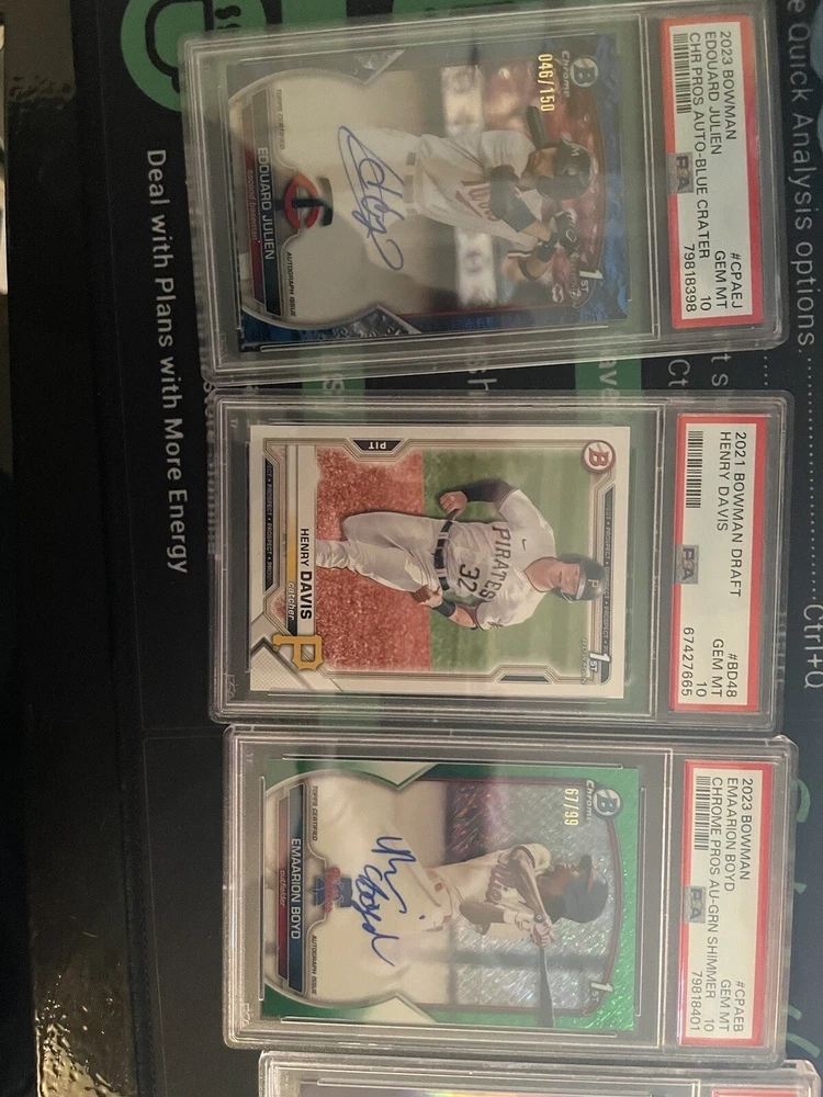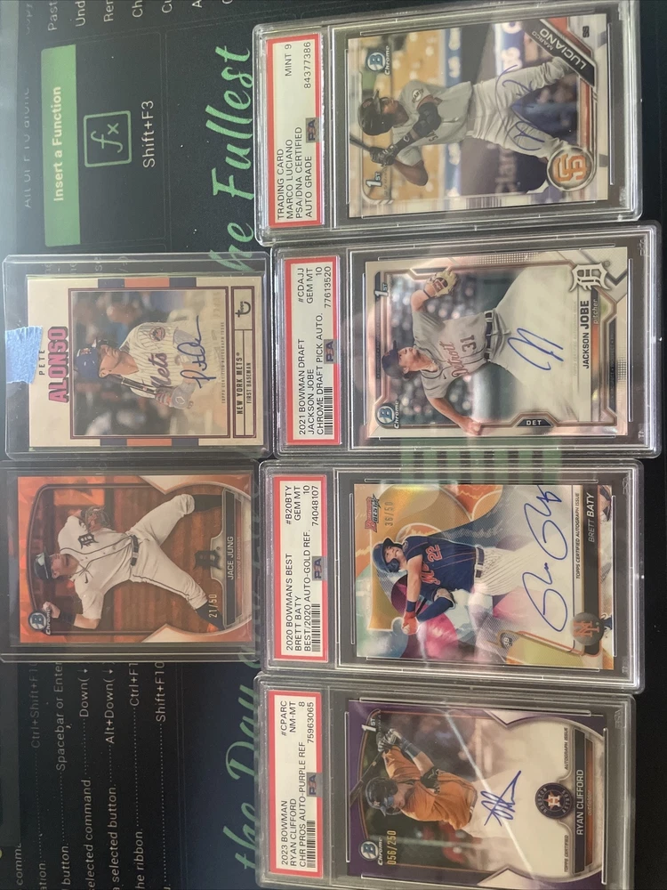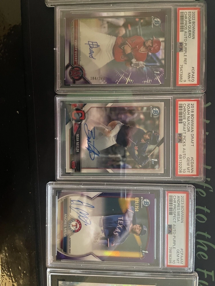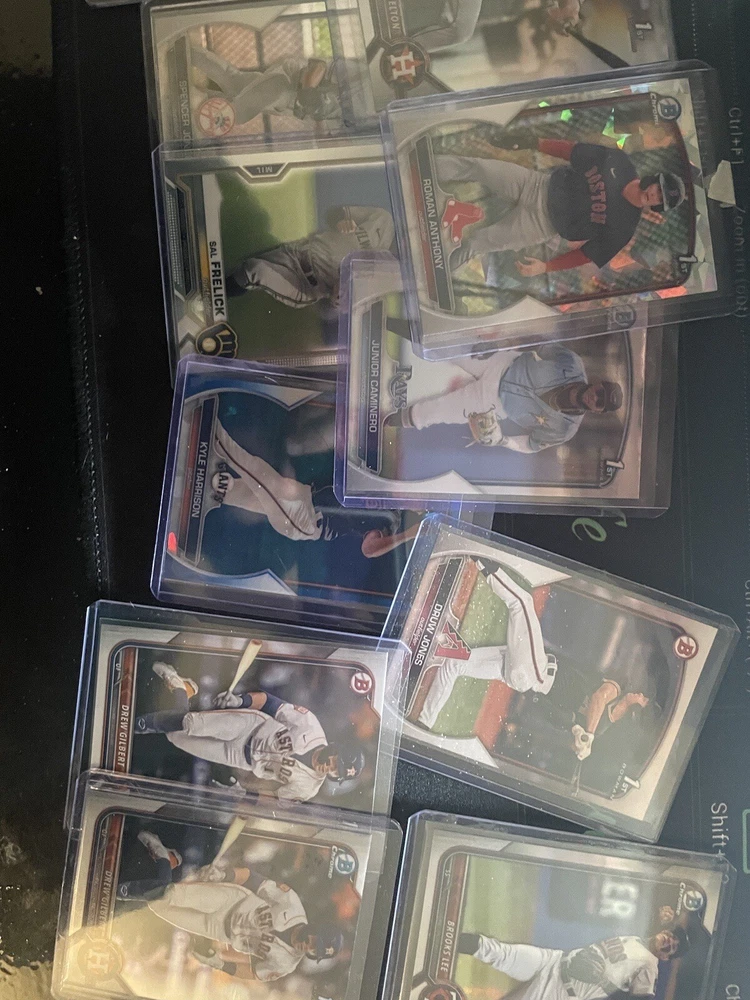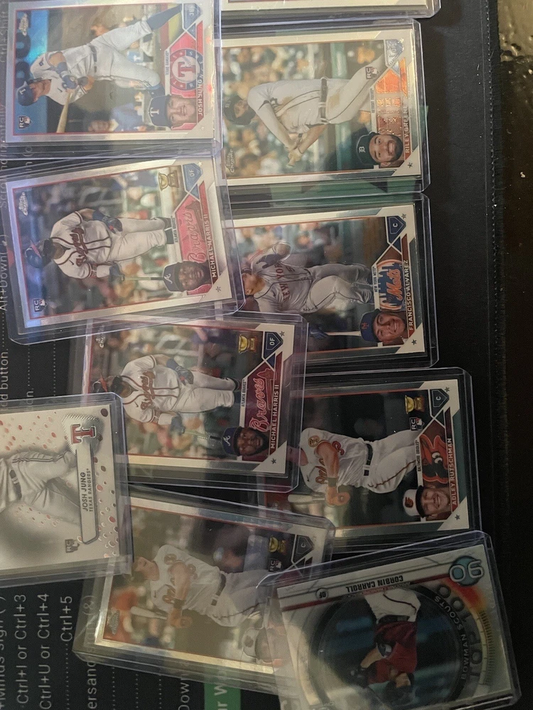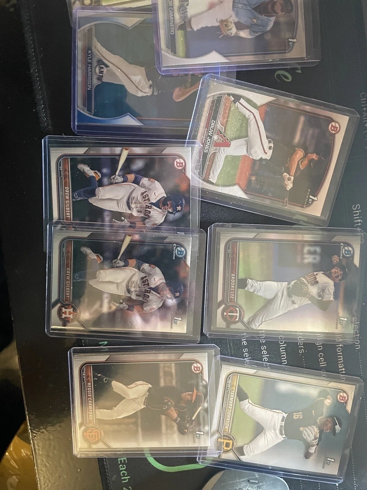 1/20 chance of getting Kyle Harrison 1st bowman auto for a low price. The perfect start to baseball collecting. Collect the most sought after arrays of baseball collectable cards in the hobby, at a great price. With a chance to get hit cards of quality numbered autographs of baseballs top prospects ranging primarily through 2020-2023 prospect years of baseball. *includes the potential for graded and ungraded cards* Contains - high quality bowman firsts (valued at $5-$15 each) - bowman firsts or Topps rookies (valued at $5-$10 total) - guaranteed hit card, guaranteed autograph or numbered card (valued at $10-$300) - Assortment of base cards from various years of Topps or bowman baseball products. A great starter pack to begin and expand your baseball collections. With a good mix of 1st bowmans, prospects and MLB rookies from the most recent classes. I am a baseball hobby enthusiast who has hand collected and packaged these mystery packs to give buyers value on their purchase. You will more than likely get above value of cards for a cheap purchase price of $29. With a chance to get $200+ value cards as well. Pictures include some of the types of cards that will be found in packs but there are many more!! *Chase Jackson Chourio 1st Bowman auto PSA 10* 50 packs - one will have Jackson Chourio 1st Bowman auto PSA 10 Other packs will be filled with quality baseball cards as well! Cheers