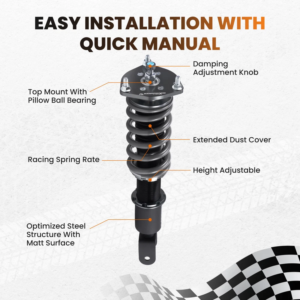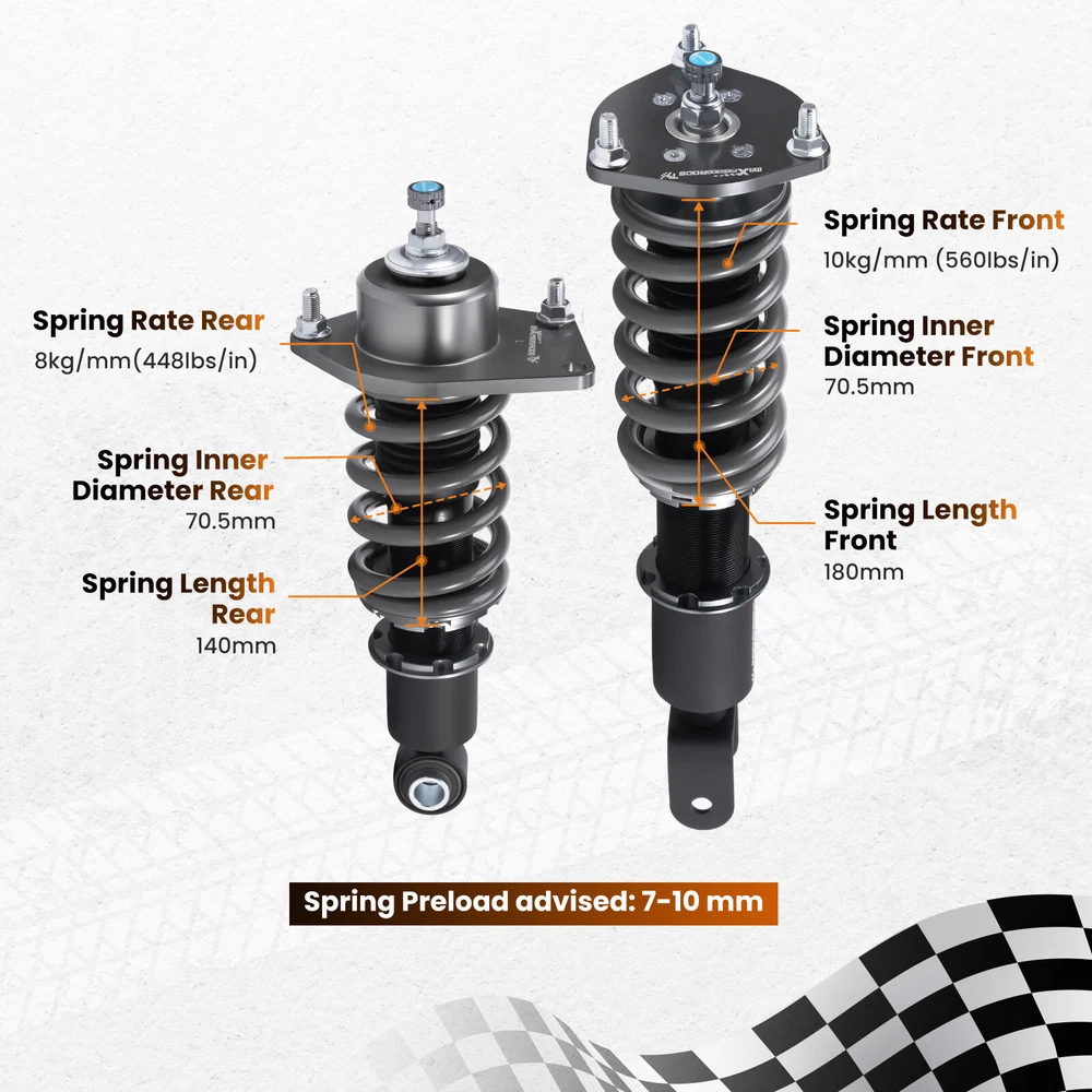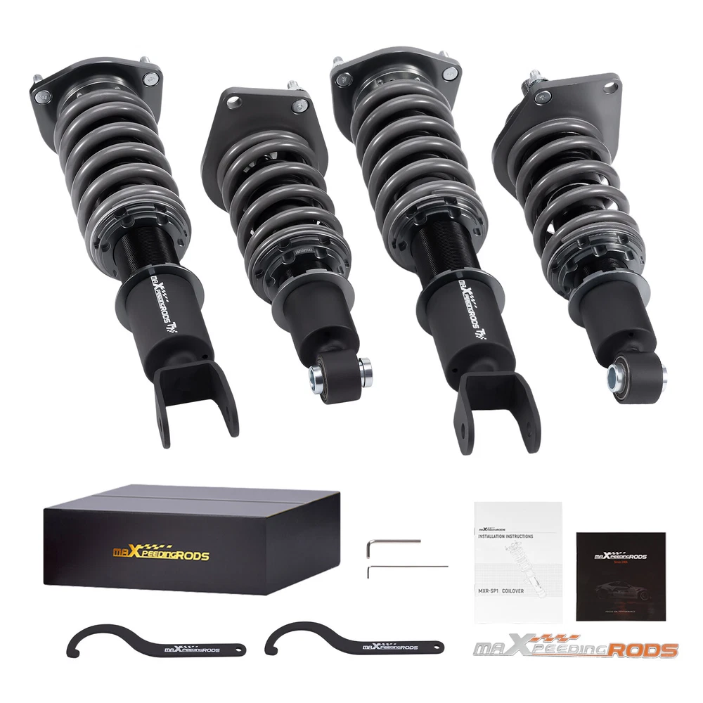 zjpss LOGO Home Contact us Promotion WHY CHOSE US Manufacturer We know our products Easy Return Quick, Simple Guaranteed Fitment Always the correct part PRODUCT DISPLAY MaXpeedingrods 24 Level Damper Coilovers Lowering Kit for Mazda RX-8 SE3P 04-11 Fast Shipping International Shipping 30 Days Return Policy Secure Shopping DESCRIPTION MaXpeedingrods T7 coil-overs are designed for daily street use and Junior track use. It features racing damping oil, an upgraded racing spring, height adjustable, and an adjustable camber plate( applicable for some vehicles), which offers you a lowered stance and enhanced handling. Features - Racing damping oil and spring rates set for occasional track use and daily street use. - Lowered height adjustment from 1" - 3" (depending on vehicle models) which adds a more aggressive stance and a lower center of gravity. - Adjustable pre-load spring tension reduces shaking motion. - 24 Clicks of Rebound Adjustments allow you to dial in your coil-overs system perfectly. - High Viscosity Index damper oil ---make damping more stable and smooth in wide temperature range. - High Rigidity 55CrSi Steel Cold-bent Coil Springs - CNC machined aluminum top mounts and lockers have excellent strength and save weight. - Highly durable and reliable heavy-duty steel lower mounts . - All inserts come with fitted long rubber boots to protect the damper and be durable. - Advanced Twin-Tube Technology provides excellent handling & control characteristics for most driving conditions - Anti-Corrosion finish anodized aluminum and powder-coated carbon steel parts with a matt-finished surface. - Every part was tested on our professional machine before being assembled and tested by our professional racers on the road. - Clean room assembled maintains a higher level of accuracy and reliability. Application For MAZDA RX-8 2003.04-2008.02 JPN SE3P BASE MODEL, TYPE E, TYPE S For MAZDA RX-8 2004-2008USA SE3P For MAZDA RX-8 2009-2011 USA SE3P Specification - Damping adjustable: Available, 24 levels of rebound damping force - Camber adjustable: Not available - Height adjustable: Yes, lowering 1-3 inches depending on the vehicle models - Spring Rate Front: 10kg/mm (560lbs/in) - Spring Rate Rear: 8kg/mm(448lbs/in) - Front spring inner diameter: 70.5mm - Rear spring inner diameter: 70.5mm - Spring length Front: 180mm - Spring length Rear: 140mm - Spring Preload advised: 7-10 mm - Color: Black body with grey spring Package included 2x front coil-overs 2x rear coil-overs 1x Allen wrench 2x C spanners ★ 30-day Money Back & 24-Month Replacement Guarantee. Please feel free to contact us if there is any question. Height Adjustable Lowering Kit; 24 Clicks of Rebound Damping Force Adjustment; Independent Ride Height And Spring Tension Settings; High Rigidity 55CrSi Steel Cold-bent Springs; Anodized Shock Body With Anti-Corrosion Coating; Top Pillow Ball Mount Provides More Precise Feel From Suspension And Steering; Full 2 Years Warranty From Date Of Purchase. SHIPPING US Domestic Shipping Notice - All items will be dispatched within 24hrs(Mon-Fri) Our carrier collects all the parcels at 4:30am PDT, any payment paid after 5:00am PDT will be shipped the next day at 4:30am PDT. If you paid Item Shipped On Est.Delivery Time Before Apr. 1st at 4:30am Apr. 1st at 5:00am Apr. 5th - Apr. 7th After Apr. 1st at 4:30am Apr. 2nd at 5:00am Apr. 6th - Apr. 8th If our estimated delivery time and eBay’s are contradictory,please refer to the standard delivery time of ours. Estimated Delivery Time From To Service Est.Delivery Time US US UPS or Fedex Ground 3-5 Business days Outside of US DHL FedEx 4-7 Business days Tracking number will be updated in 24 hours after shipment Please provide the following shipping information for your order Full physical address Telephone number Otherwise your shipment will be deferred. We are not responsible for any shipping lost caused by wrong shipping information Shipping rate If our ebay item listing doesn't show the shipping cost to your place. Please contact us to calculate the shipping fee for you. International Shipment For international shipment, we do not cover any import taxes or duties. Import tax is charged by the government, not us. Our item price and shipping cost do not include any import tax which will be charged by the shipping company when you got the parcel. Please be noted that is not the extra shipping fee. ` NO hidden charge!!! WARRANTY Free 2 Year Warranty: All AutoModPlanet products have 2 year warranty (unless otherwise stated). In the very unlikely event that you have a problem with our product, please contact us via eBay messages. Easy Return: If you are unhappy with your purchase for any reason, you can return it to us in an un-used condition in the original packaging within 30 days of purchase and we'll give you a refund or exchange. The refund/Exchange will not include postage/eBay costs. Please note you MUST contact us to obtain a Return Authorization Number before returning any part. Any parcel without the Return Authorization Number will be rejected. If your item is faulty or was incorrect, you must contact our sales representative before returning the parcel and we will endeavour to solve the problem effectively. Video or picture is required to show the item condition before we issue the Return Authorization Number. Important notice: 1. Any returned item(s) without Return authorization number will be rejected. 2. Please return your item(s) in original packaging and ensure that all packages are securely wrapped 3. We will not accept responsibility for loss or damage of goods during transit, please ensure that the insurance cover option is taken where possible 4. Upon receipt, all products will be inspected at our discretion in 3-5 business days. Then, the updated result will be informed. If you have made a mistake on purchase and wish to cancel the order before it is dispatched please contact us by ebay massages or email as quickly as possible. Note: All parc