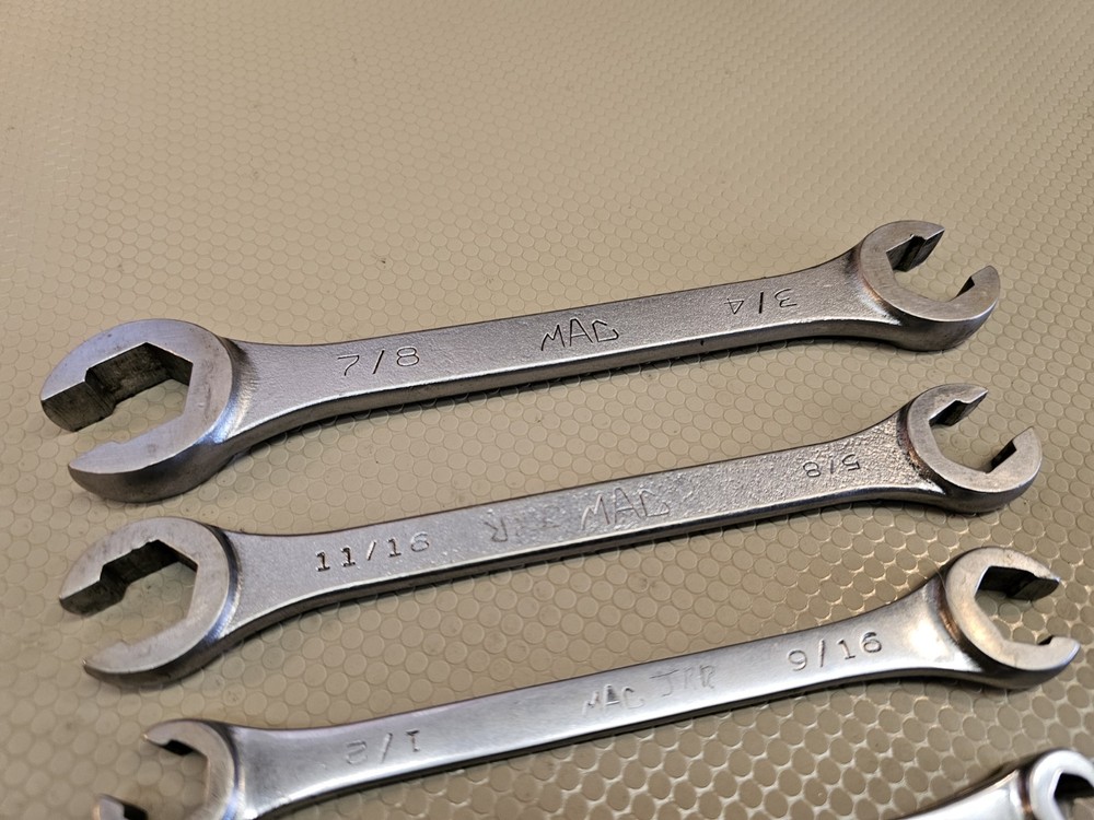 nice set of mac flare wrenches. some have owner markings but some useful unique sizes.