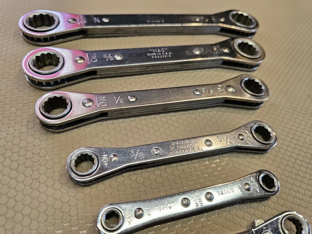 Country/Region of Manufacture:United StatesSet or Single Item:Single Itemgtin13:Does not applyNumber of Pieces:5Modified Item:NoWarranty:No WarrantyCustom Bundle:NoSystem of Measurement:SAEType:Ratchet Double Box End WrenchBrand:Mac ToolsUPC:Does not applyManufacturer Part Number:Does Not Apply