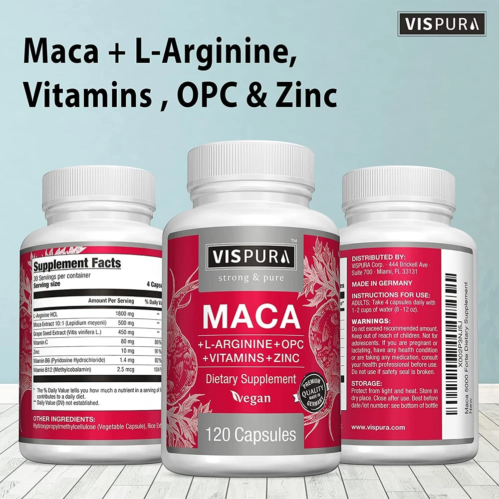 Maca Root Capsules 5000 mg 120 vegan Pills Peruvian Maca Extract for Men & Women