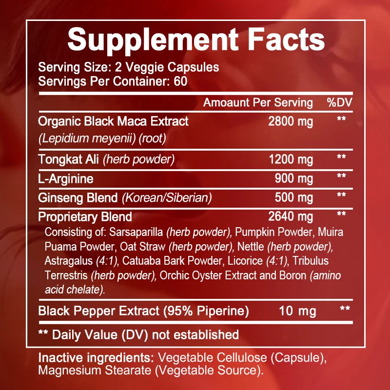 About this item: ๐ฟ Pure Maca Root Supplement with Maca Root, Ashwagandha Root, Ginseng, Tribulus Terrestris and Black Pepper; Elevate well-being. ๐ฟ 7in1 Extra Formula Booster with High Absorption Agobi Maca Extract Complex; Support strength, muscle mass, energy production and immune system for men & women. ๐ฟ 8050Mg Potency - Just ONE easy-to-swallow pill daily; Convenient 3-month supply with 1 pack of vegan capsules. Start today! ๐ฟ Tested! All Tongkat Ali Supplements are made by cGMP, ISO, and FDA-registered manufacturer. Gluten-free, non-GMO, plant-based, keto-friendly, vegan. Quality assured by USA lab. ๐ฟ Herbal Maca Ashwagandha Capsule Blend maintains balance with exercise and a healthy lifestyle. Discover the benefits of Agobi Dietary Supplements for safe and healthy living. Features: IMMUNE SYSTEM ENHANCED BLOOD FLOW PERFORMANCE & MOOD REPRODUCTIVE HEALTH