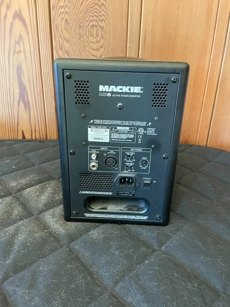 Well-used Mackie MR5 monitor. Works, but buzzes in some ranges. Should be an easy repair if you have the know-how. Will also include power supply and RCA-to-bare cable.
