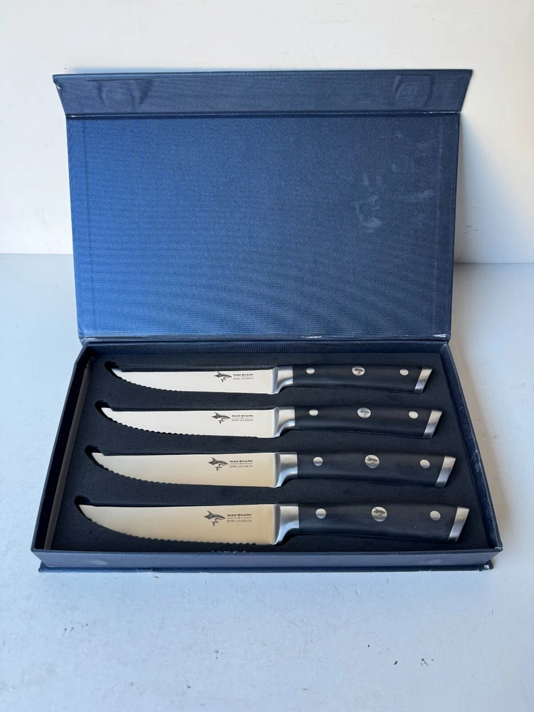 Mad Shark Entry Lux Series Ergonomic Handle Stainless Steel Chef's Knife (4-Set) Description Mad Shark Entry Lux Series Ergonomic Handle Stainless Steel Chef's Knife (4-Set). Product Detail • Brand : Mad Shark • Material : Stainless Steel • Blade Color : Silver • Type : Chef's Knife Please message me if you have any questions.