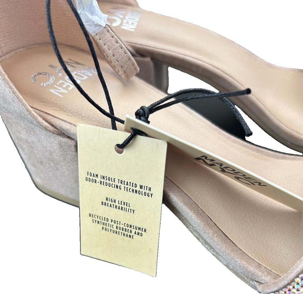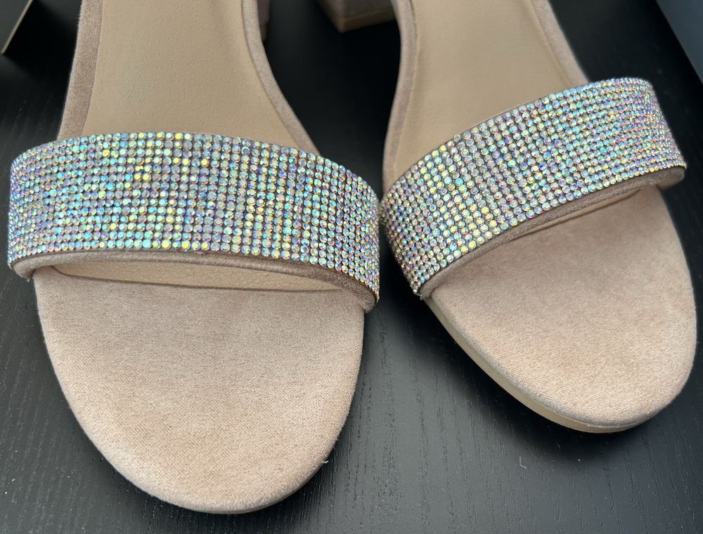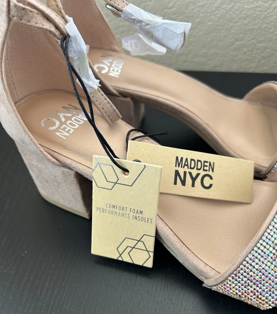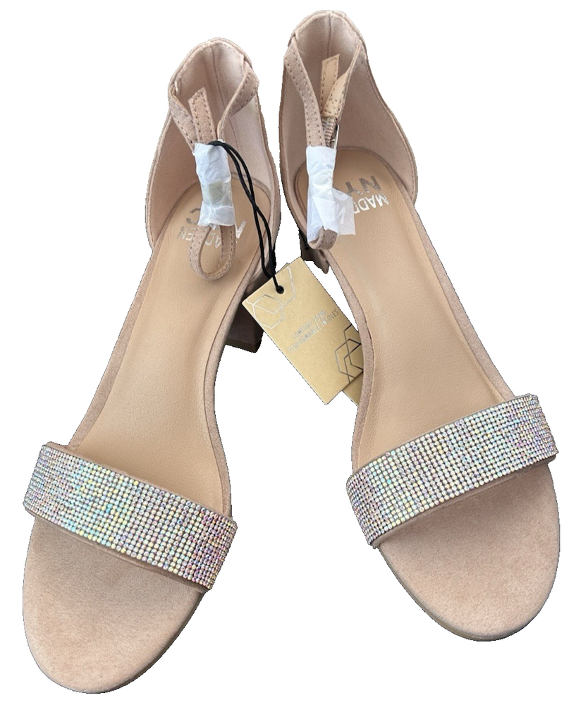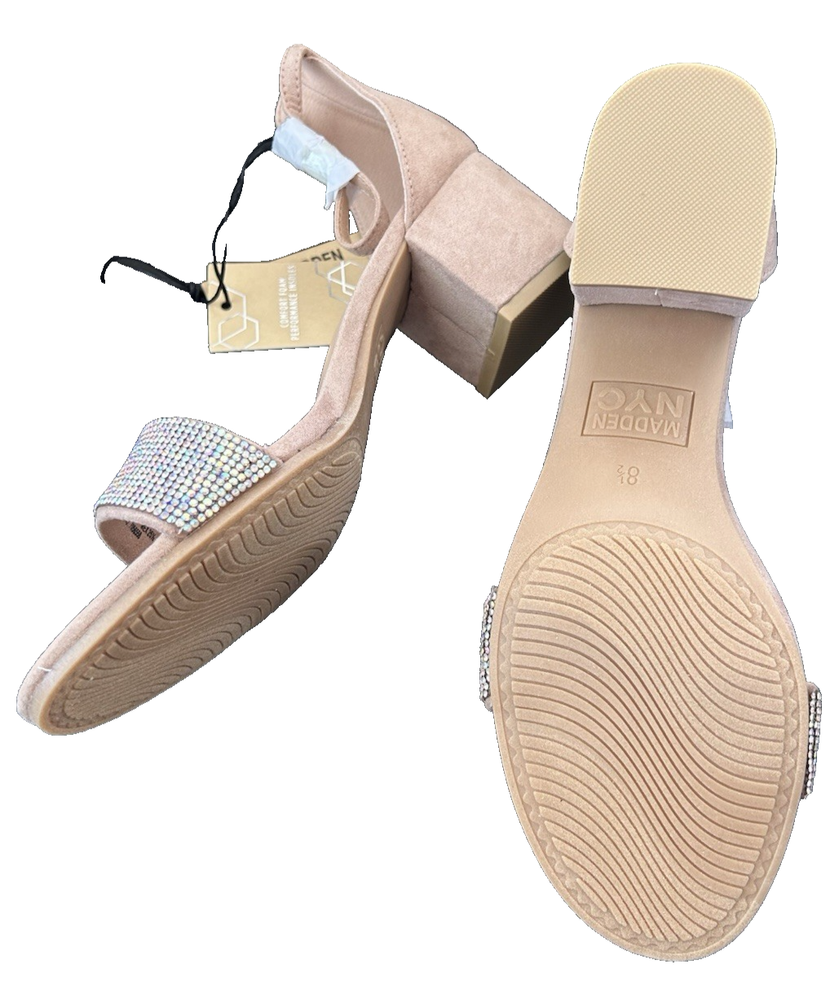 Step out in style with the Madden NYC Women's Rhinestone Ankle Strap Dress Heels, a blend of elegance and comfort that's sure to turn heads. The model boasts a chic open toe design, perfect for springtime sophistication. With a 2-2.9 inch block heel, these heels provide a stable lift without sacrificing comfort, making them ideal for both daytime and evening wear. These dress heels feature an adjustable ankle strap that ensures a secure fit. The size 8.5 shoes are a delightful addition to any wardrobe.