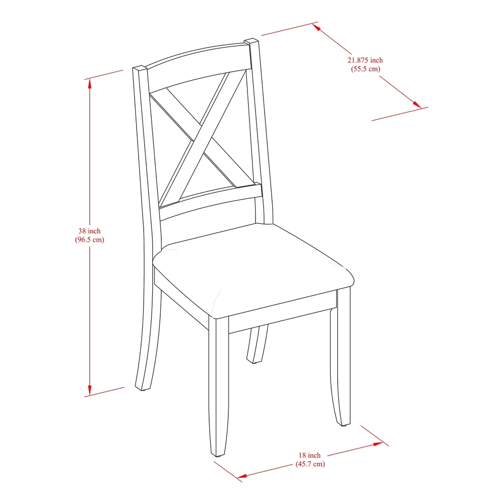 These timeless, elegant and comfortable Better Homes & Gardens Maddox Crossing Dining Chairs will make a lovely addition to your home. The set of two stylish chairs features a multi-step, hand-applied, rich-hued finish that is sure to complement most any interior decor or home furnishings from modern to traditional and everything in between. Sturdy construction ensures these chairs will bring joy and function to your space for many years to come. They can be used in your dining area, living room, breakfast nook or for additional seating anywhere else in your home or office. The pair coordinates well with tables and other pieces from the Maddox Crossing Collection, including the Maddox Crossing Dining Bench and Maddox Crossing Dining Table (sold separately), and they would also fit seamlessly into any other style. These chairs are easy to assemble so that you can use them almost immediately, and they are covered by a 1-year warranty. Complete your dining set with other pieces from the stunning Better Homes & Gardens Maddox Crossing Collection. Perfect for dining room, kitchen, home office or anywhere in your home Complements most any decor, from modern and contemporary to elegant and traditional Coordinates with tables and furniture from our Maddox Crossing Collection Sturdy construction Multi-step, hand-applied finish Easy Assembly 1-year warranty Dining chair dimensions: 18"L x 21.5"W x 38"H (45.7 cm X 54.6 cm X 96.5 cm) Model #s: BH44-084-399-01