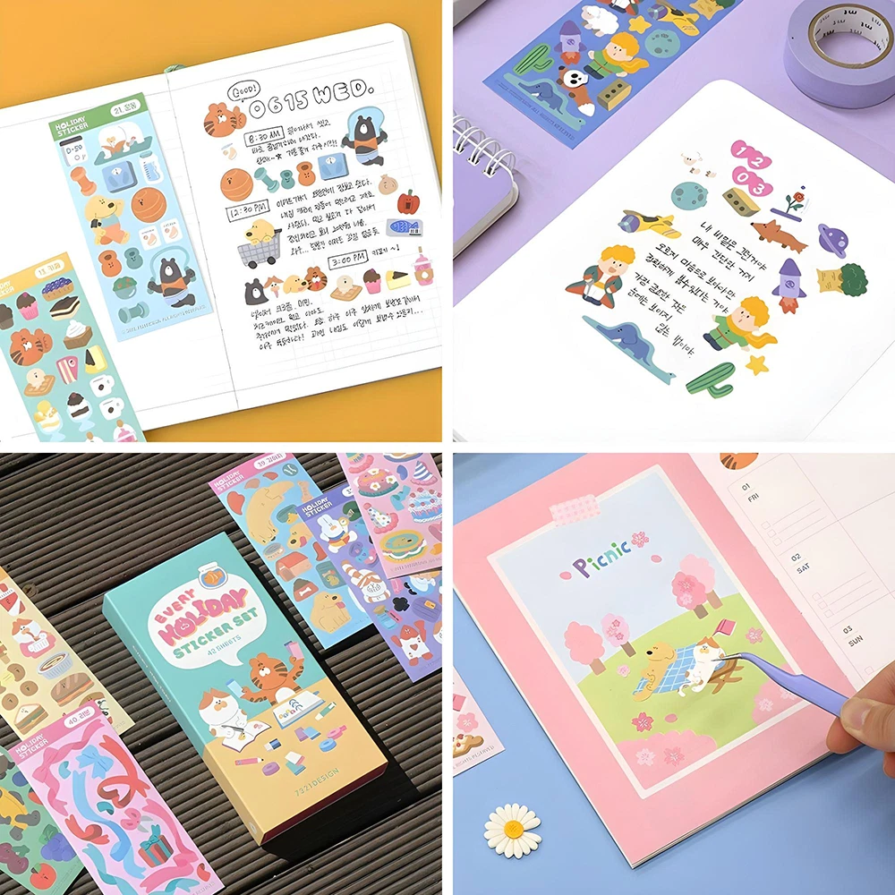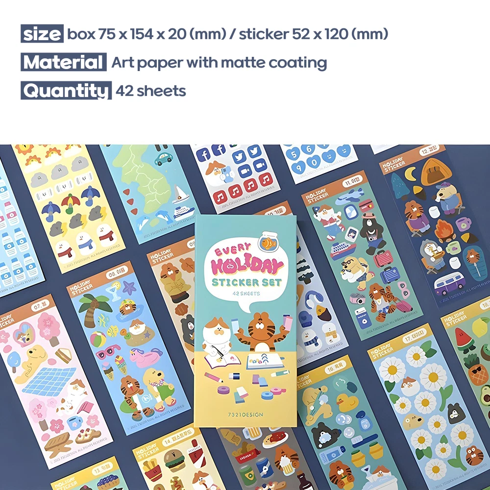 Korean Artist Illustration Sticker Box Set (24 Types) π Product Description This sticker pack & journaling kit is exclusively designed and sold in Korea. Enjoy high-quality Made in Korea stationery for your decorating needs! β Sticker Pack with 42 Types in a Paper Case! β Perfect for decorating your Hobonichi, scrapbook, photocard holder, or laptop! β A must-have Korean stationery set for Kawaii & DIY lovers! We hope this Korean stationery brings a little happiness to your daily life. π π Whatβs Included? A set of 24 uniquely designed stickers and a cute memo pad for extra journaling fun High-quality, vibrant prints that add a special touch to your journaling supplies (Check the product images for detailed contents.) Feel free to reach out if you have any questions! β Carefully packed with love to ensure a safe delivery. β We do our best to make your unboxing experience even more delightful! π Shipping Information βΎ Economy Shipping: 10-30 days (tracking included) βΎ Expedited Shipping: 3-10 days (tracking included) βΎ Delivery times may vary due to international shipping conditions. π Return Policy Buyers are responsible for return shipping costs unless the wrong item was sent or there is a quality issue. All items must be returned in their original condition, including the packaging. For more details on returns, please contact our customer service. π’ Customs Notice Customs duties may apply depending on your country. Buyers are responsible for any applicable fees, so please check your country?s customs regulations before purchasing. π We sell a variety of cute Korean stationery. Combined shipping is available, so feel free to browse through a variety of products in my listings!:)