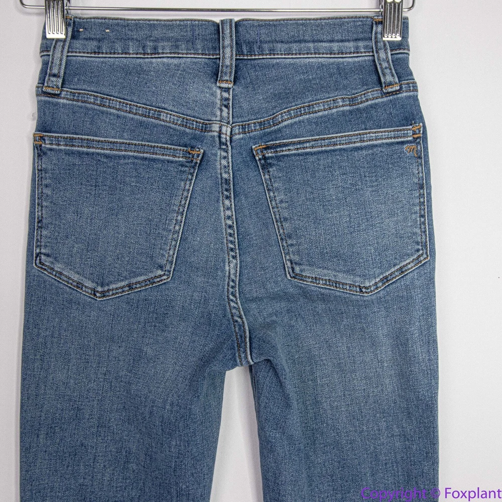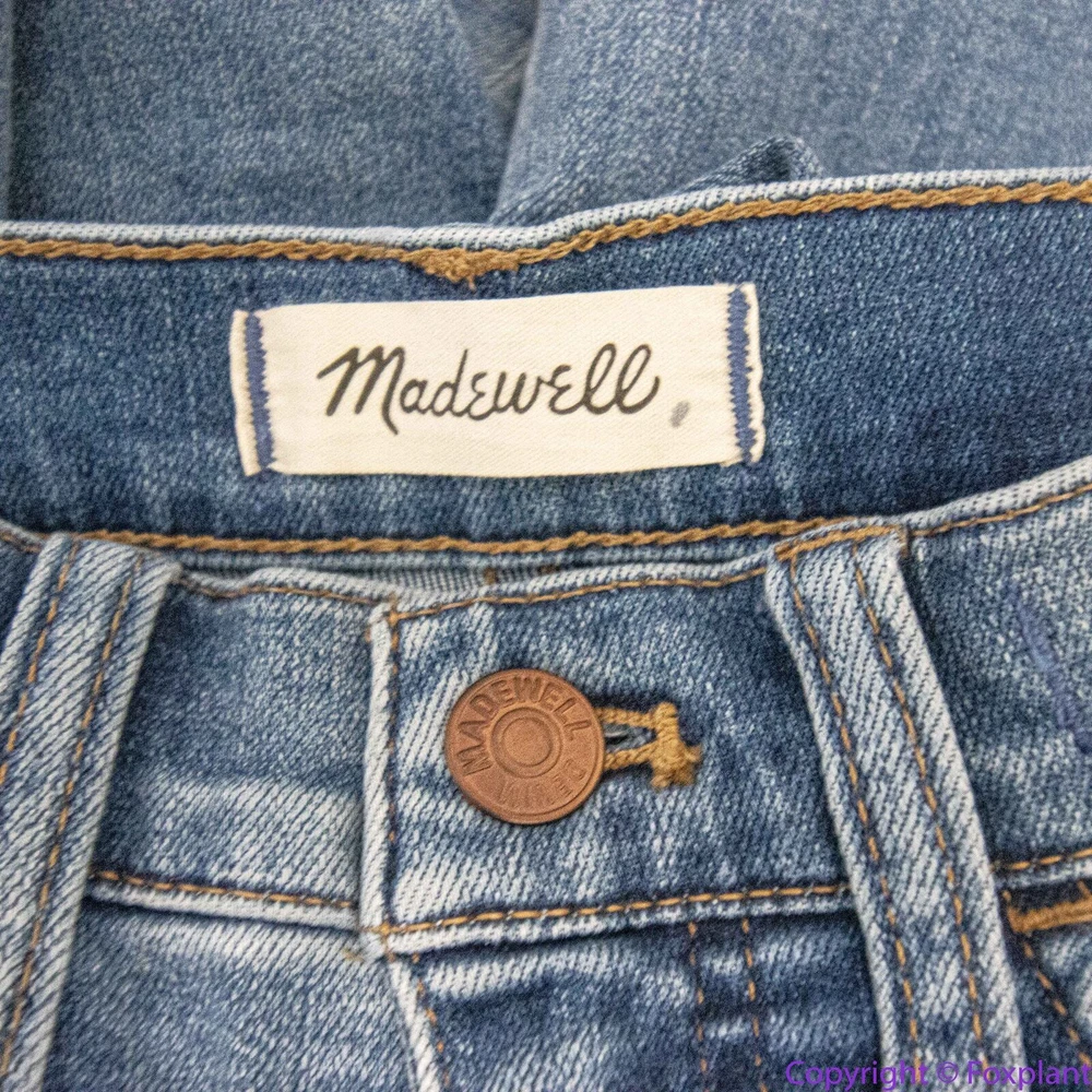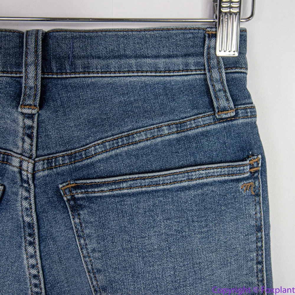 Madewell 10" High-Rise Roadtripper Authentic Jeans in Vinton Wash, 23 High rated on Madewell's website. Lightweight and supercomfy, these 10" high-rise skinny jeans are made of our new Roadtripper Authentic denim that has an old-school rigid look and tons of stretch. 76% cotton/22% poly/2% spandex denim. Magic Pockets. Item MD518 Measurements shown in photos are approximate and provided as a courtesy, not a guarantee of fit. Sometimes jean inseam measured by a yardstick from the crotch to the hem may be a little bit shorter than using a soft tape measuring along the seam. Excellent condition. No noticeable flaws or stains or damages. Smoke free, pet free home. Actual colors may vary due to differences in lightings and computer monitors.