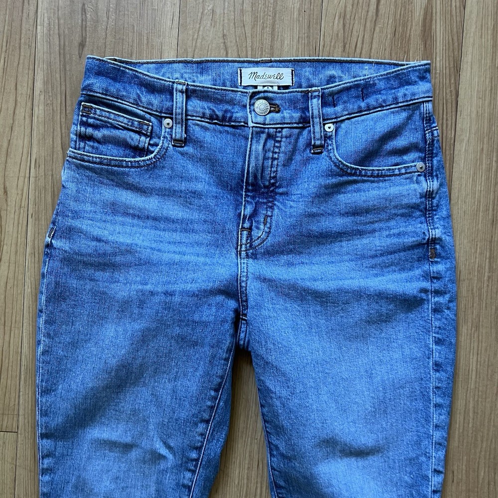 Elevate your style with these Madewell 9" High-Rise Skinny Crop Jeans in a beautiful blue color. These jeans are perfect for any occasion and feature a stylish destructed-hem edition that adds a unique touch to your outfit. The high-rise design and skinny fit provide a flattering silhouette, while the crop length is perfect for showing off your favorite footwear. These Madewell jeans are made from high-quality materials and boast a range of features, including a regular size type, a 24-inch inseam, and a high rise of greater than 10.5 inches. They are ideal for women who love skinny jeans and want to make a fashion statement. Don't miss out on these must-have jeans, perfect for any wardrobe. Madewell 9" High-Rise Skinny Crop Jeans: Destructed-Hem Edition 🟣Size 25 Front rise: 10" Inseam: 24" Waist 15” Lean and legs-for-days sexy, our cropped 9" high-rise jeans. Plus, this perfectly worn-in pair has cool destructed hems. Sit above hip, fitted through hip and thigh, with a skinny leg. Premium 98% cotton/2% polyurethane denim from Machine wash. Import. ☯️Excellent Condition, pre-owned ☯️No smoke, no pets home! ☯️Great addition to your wardrobe! ☯️Fast Order Processing!📦 💟✨Happy Shopping!✨💟 ✨Welcome my closet MargaryShopUSA✨