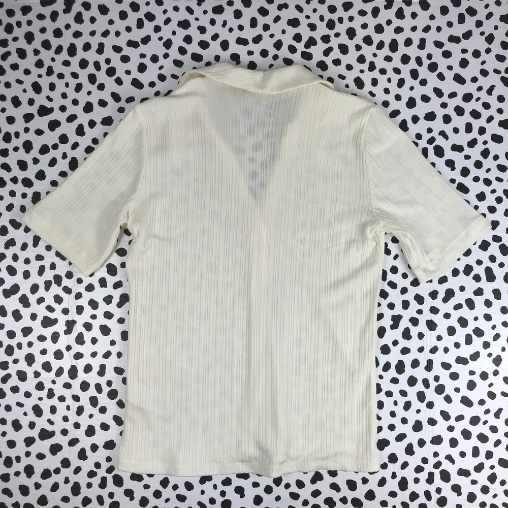 MADEWELL DEF Women's Cutaway Hem Polo Top Creme Fraiche MEDIUM NR213 Madewell Cutaway Hem Polo Top Lyocell Elastane *** SMALL HOLE IN FABRIC IN SHOULDER SEE IMAGES Kansas City 9943
