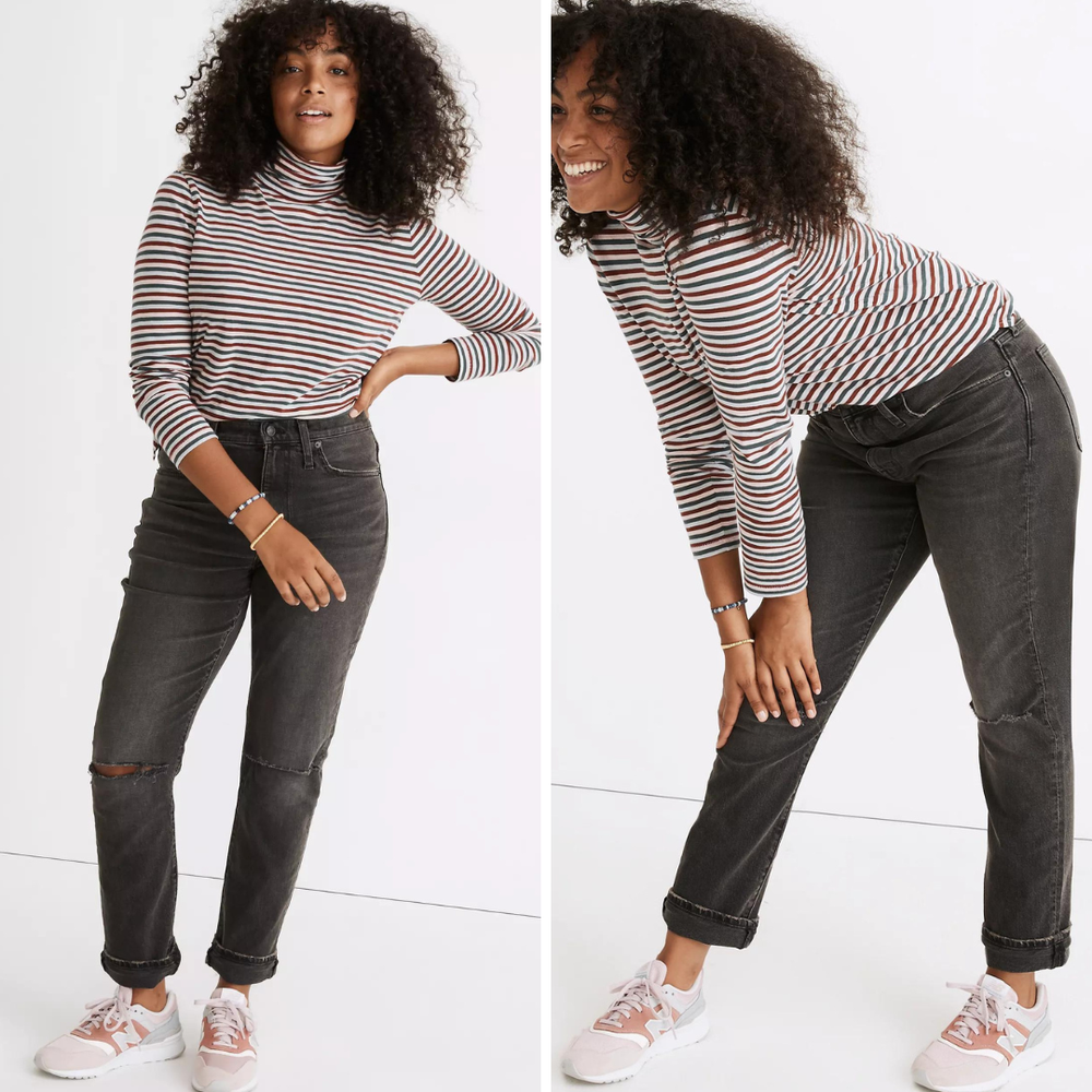 NEW Madewell The High-Rise Slim Boyjean in Caton Wash: Ripped-Knee Edition, women's size 28 The cut: Easy in the (high) waist, our signature boyfriend fit has a slim-but-still-relaxed leg (think a vintage men's jean cut to flatter you). The fabric: Our best-selling Heritage Stretch denim has an old-school look and a touch of give for a perfectly broken-in feel. Styling tip: buy your true size for a slouchy, easy feel or size down for a more fitted look. 99% cotton/1% elastane Heritage Stretch denim. Ripped knees. Machine wash. NA936 Size 28, approximate laid flat measurements: Waist (without dip, the front and the back of the waistband aligned): 15 3/4'' Rise: 12'' Inseam: 27 1/2'' cuffed, 29 1/2'' uncuffed Leg opening: 6 3/4'' Measurements provided as a courtesy, not a guarantee of fit. Excellent condition. No noticeable flaws or stains or damages. Actual colors may vary. This is due to computer monitors displaying colors differently and everyone can see these colors differently.