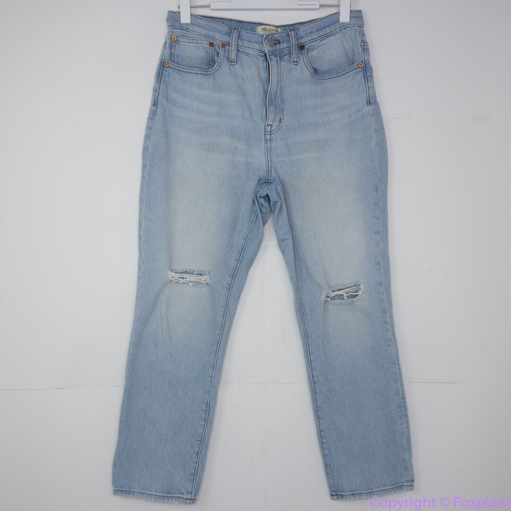 Madewell The High-Rise Slim Crop Boyjean in Dumas Wash: Ripped Edition,size 28 Easy in the (high) waist, our signature boyfriend fit in a light indigo wash with rips at the knees has a slim-but-still-relaxed cropped leg. Think a vintage men's jean cut to flatter you. Made of our best-selling Heritage Stretch denim that has an old-school look and a touch of give for a perfectly broken-in feel 99% cotton/1% spandex comfort stretch denim. Ripped knees. MC556 Size 28 , approximate laid flat measurements: Waist (without dip, the front and the back of the waistband aligned): 16'' Rise:11 1/2 '' Inseam(soft measuring tape along the inseam ): 26 3/4'' Leg opening: 7'' Measurements provided as a courtesy, not a guarantee of fit. Please note: some light stains as shown. Smoke free, pet free home. Actual colors may vary due to differences in lightings and computer monitors. 3118